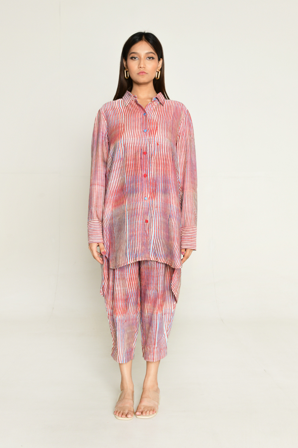 Dabu/Bagru from Rajasthan and hand block printing over handwoven fabrics from Bengal. RIAS calls it a “cocktail” of craft traditions, but it feels more like a conversation—between regions, between histories, between the past and the present. Their studio becomes the meeting ground where ancient mud-resist techniques and handwoven textiles find new relevance through contemporary design.