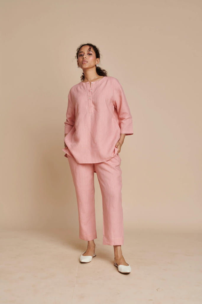 Their pieces are crafted exclusively from high-quality, ethically sourced Euroflax-certified linen, chosen for its purity, longevity, and low environmental impact. The brand’s design language mirrors the nature of the textile itself: clean-lined, airy, minimal, and beautifully unfussy. These are garments that live with you — softening, easing, and developing their own patina over time.