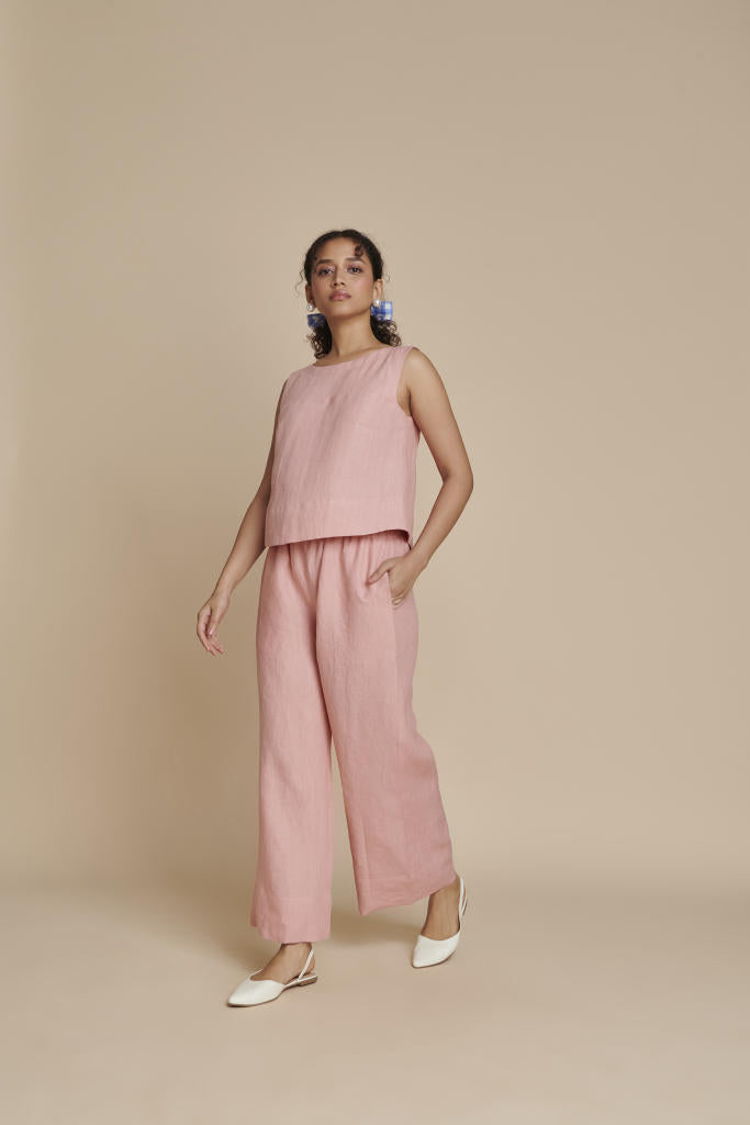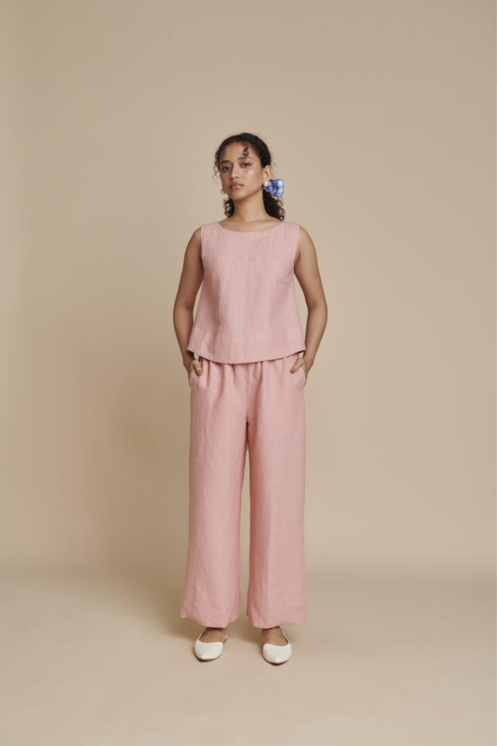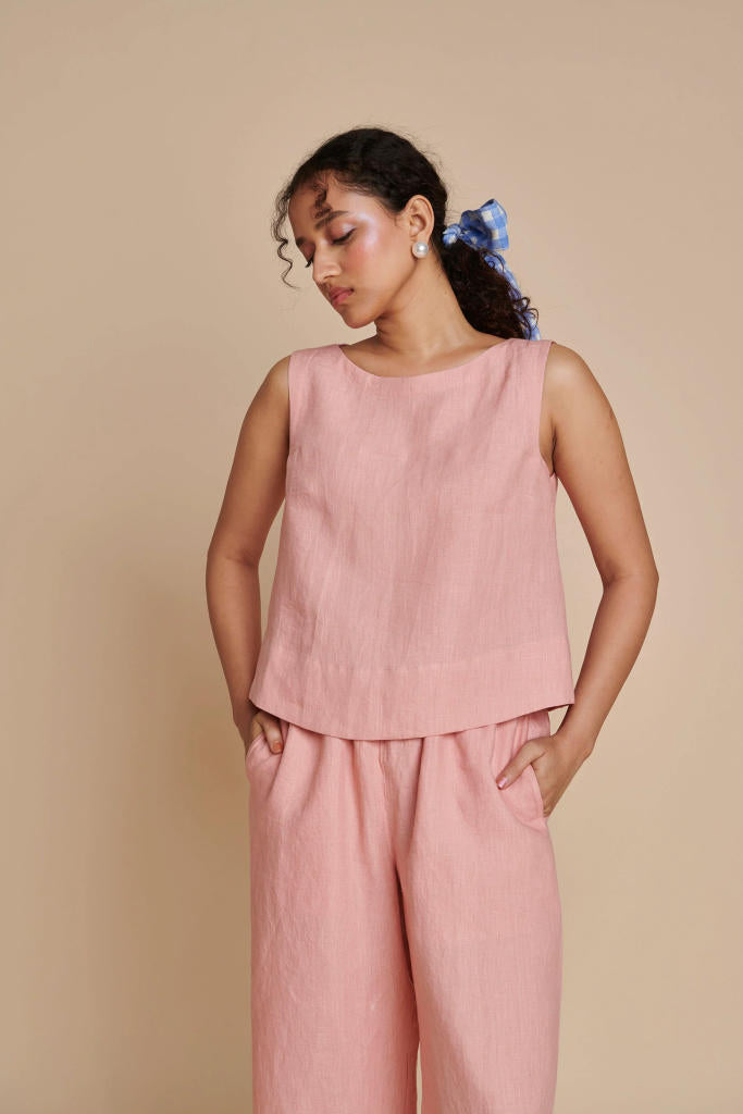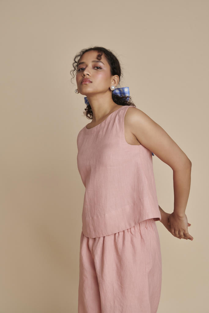 Candy Floss Linen Sleeveless Top & Pyjama Set