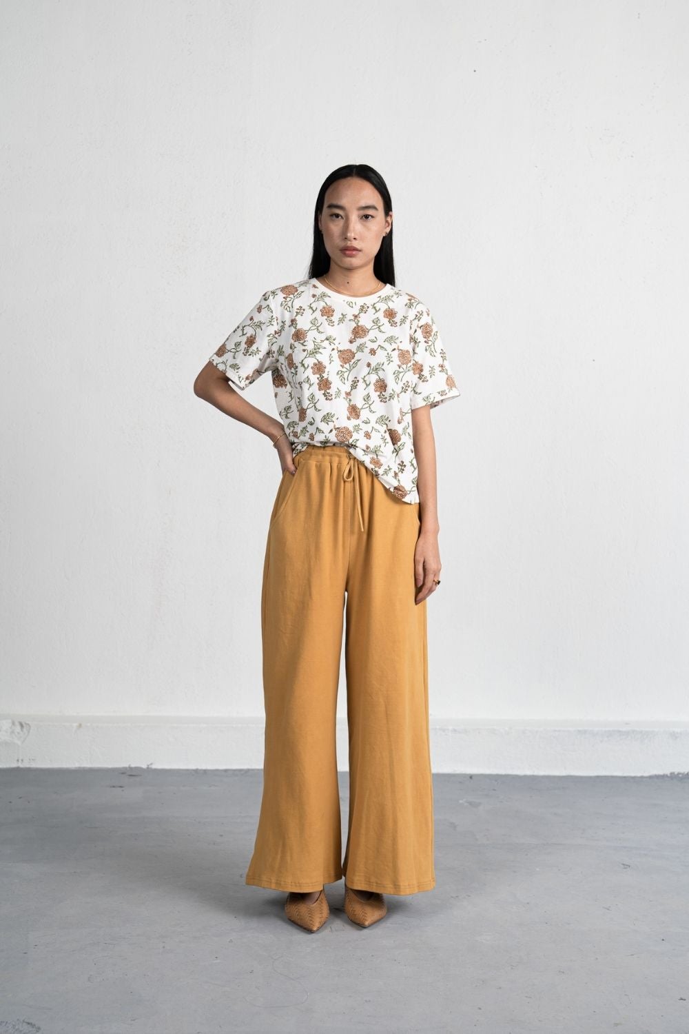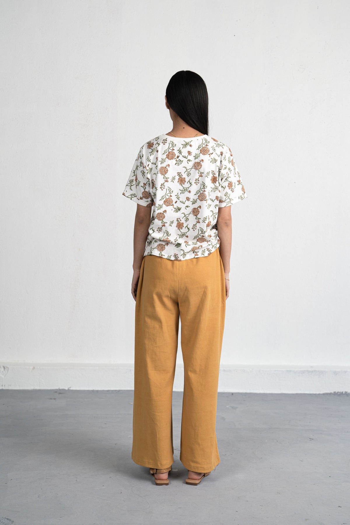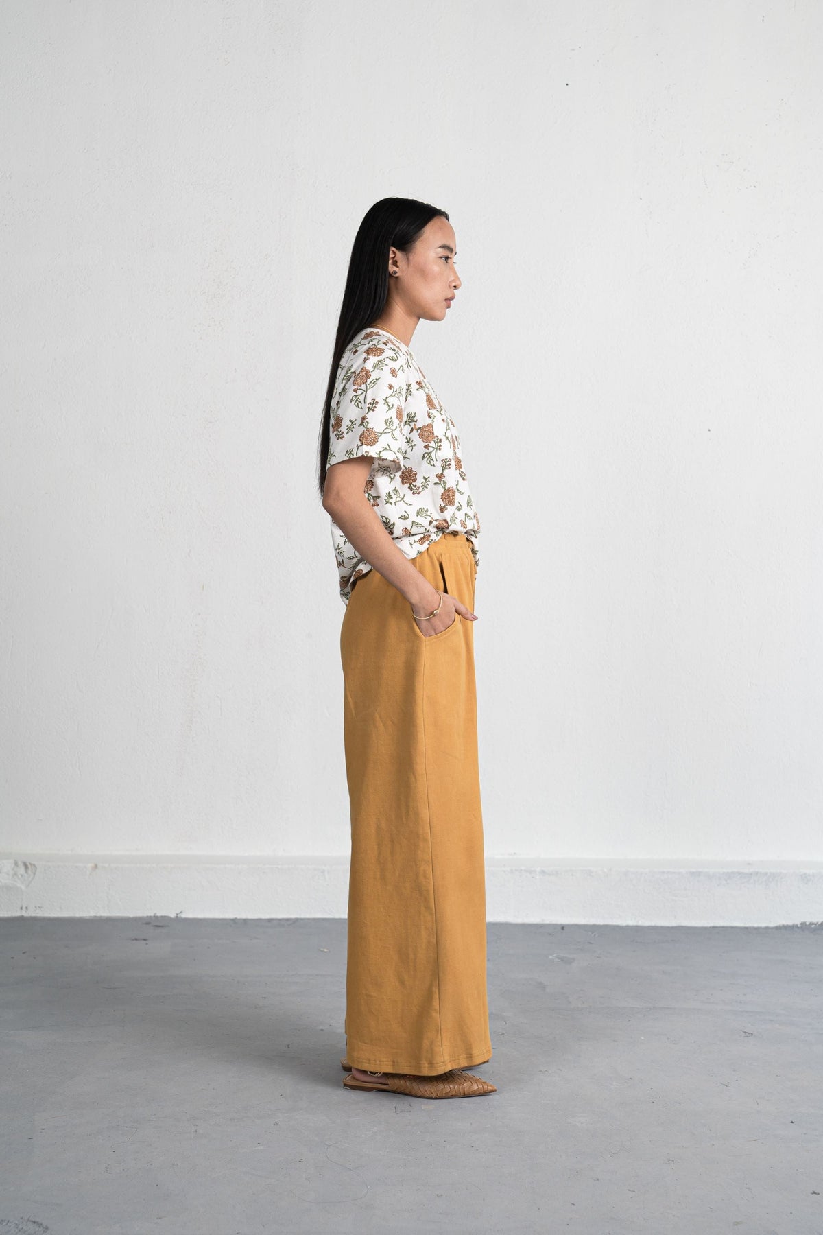 Regular fit, straight-leg trousers crafted in herbal-dyed, organic cotton ribbed fabric.