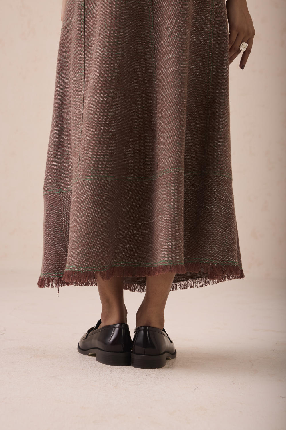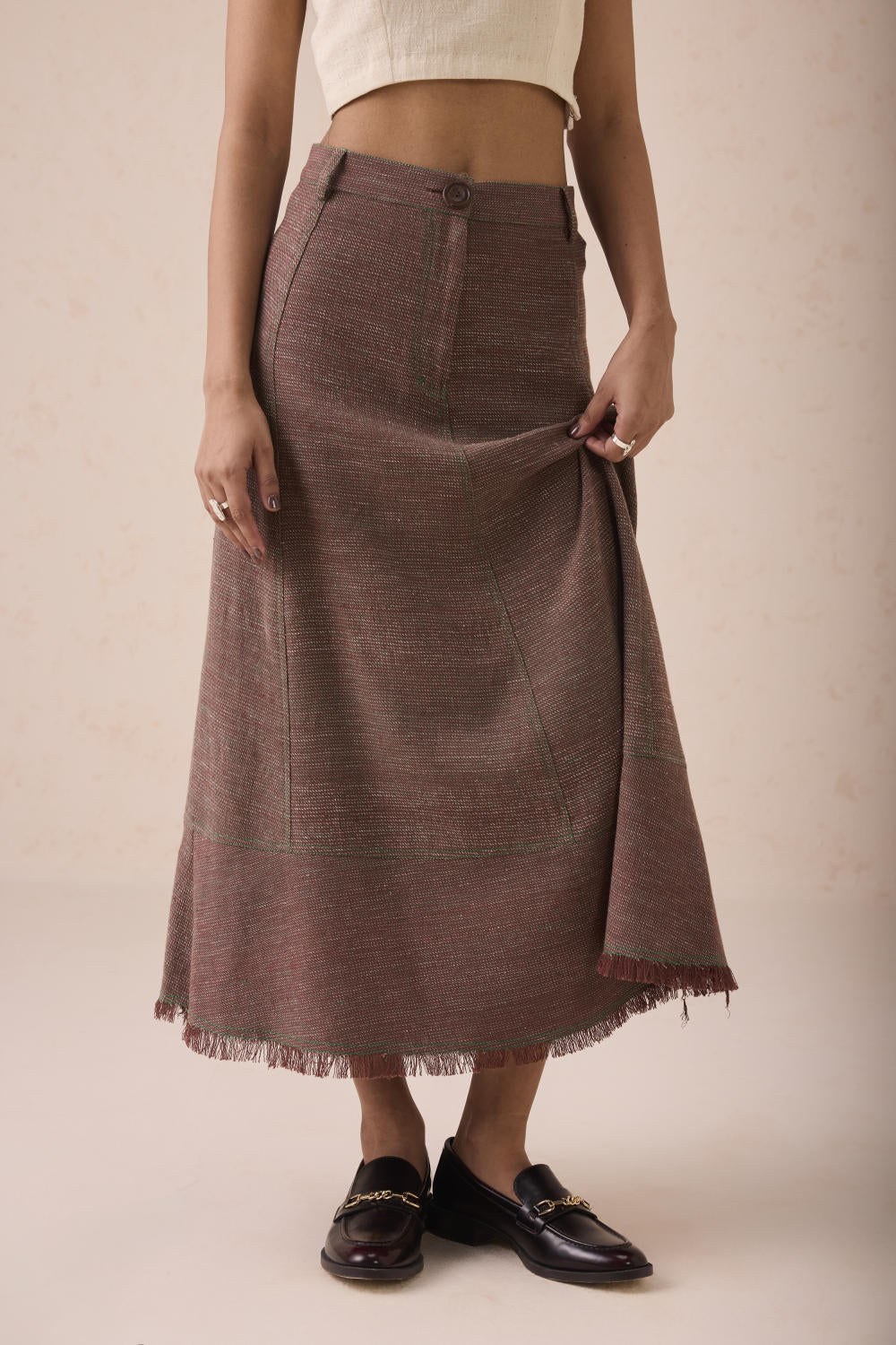 This classic skirt is made in a fabric that's custom weaved by our handloom partner, WomenWeave - it's completely made by hand from spinning the fibres to weaving it into fabric by Indian artisans.