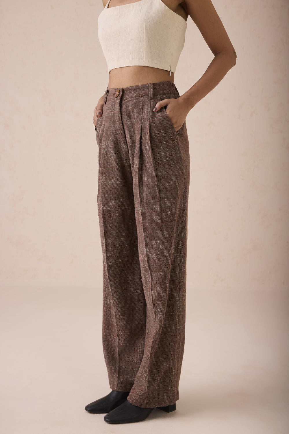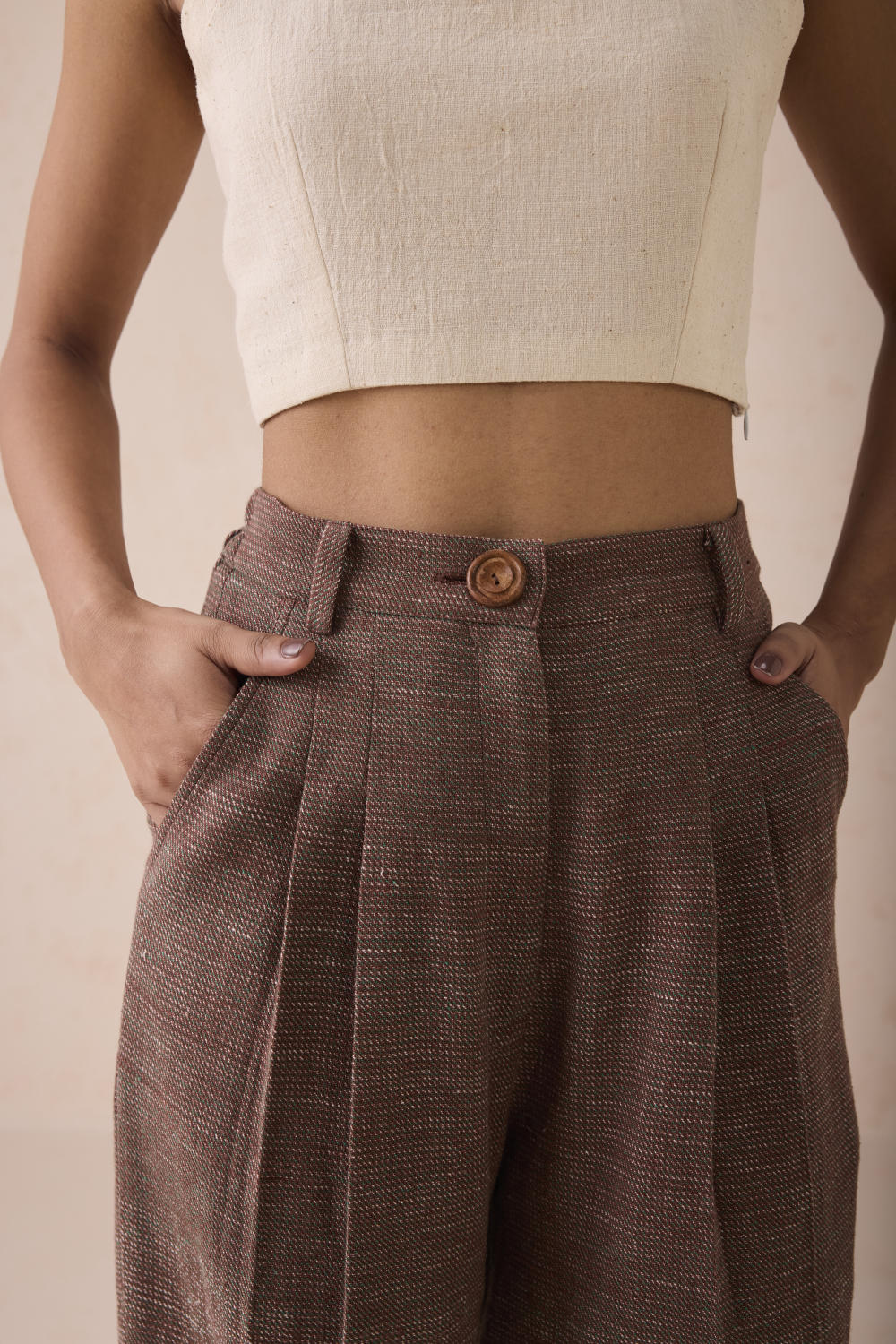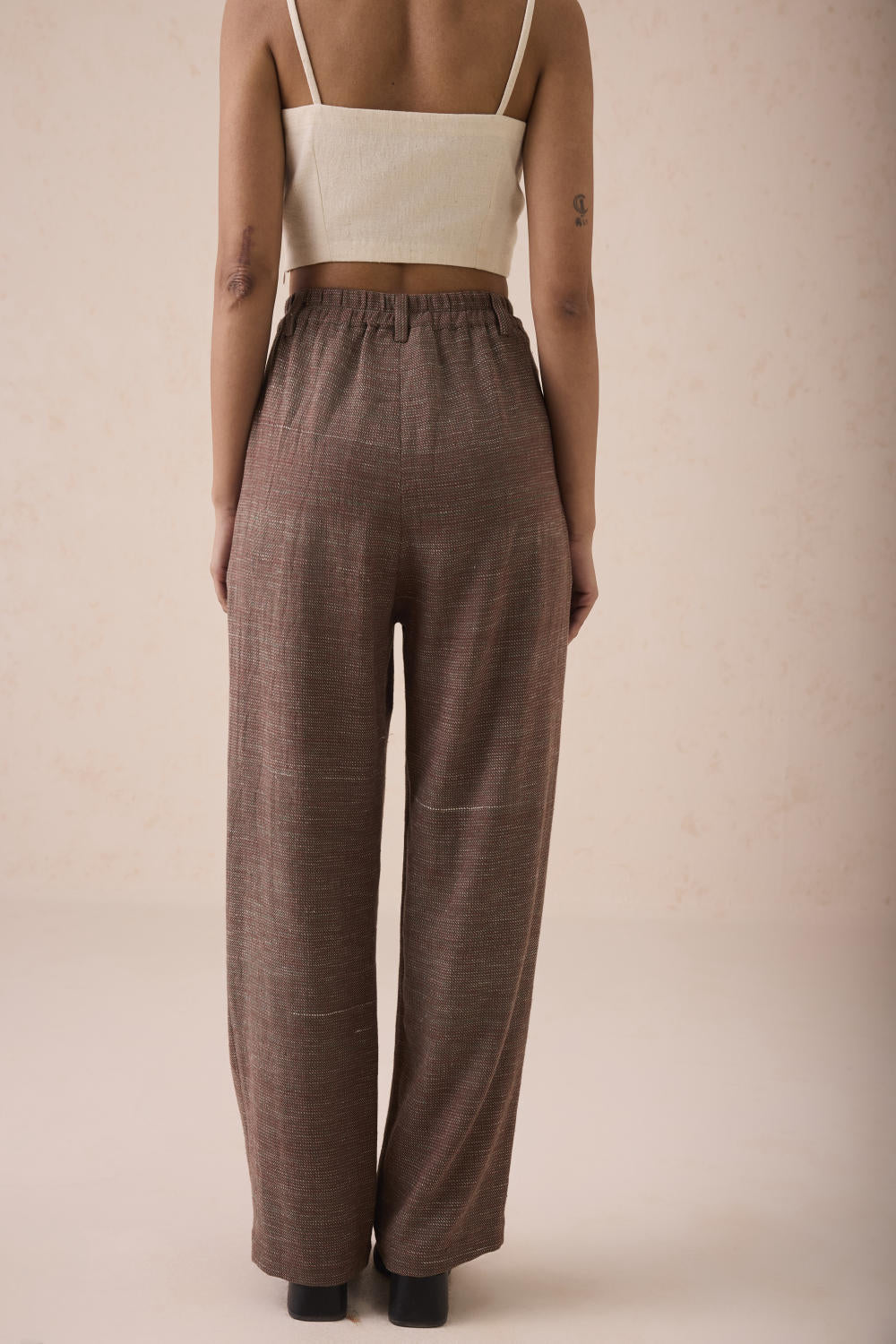 These trousers are made in a fabric that's custom weaved by our handloom partner, WomenWeave - it's completely made by hand from spinning the fibres to weaving it into fabric by Indian artisans.