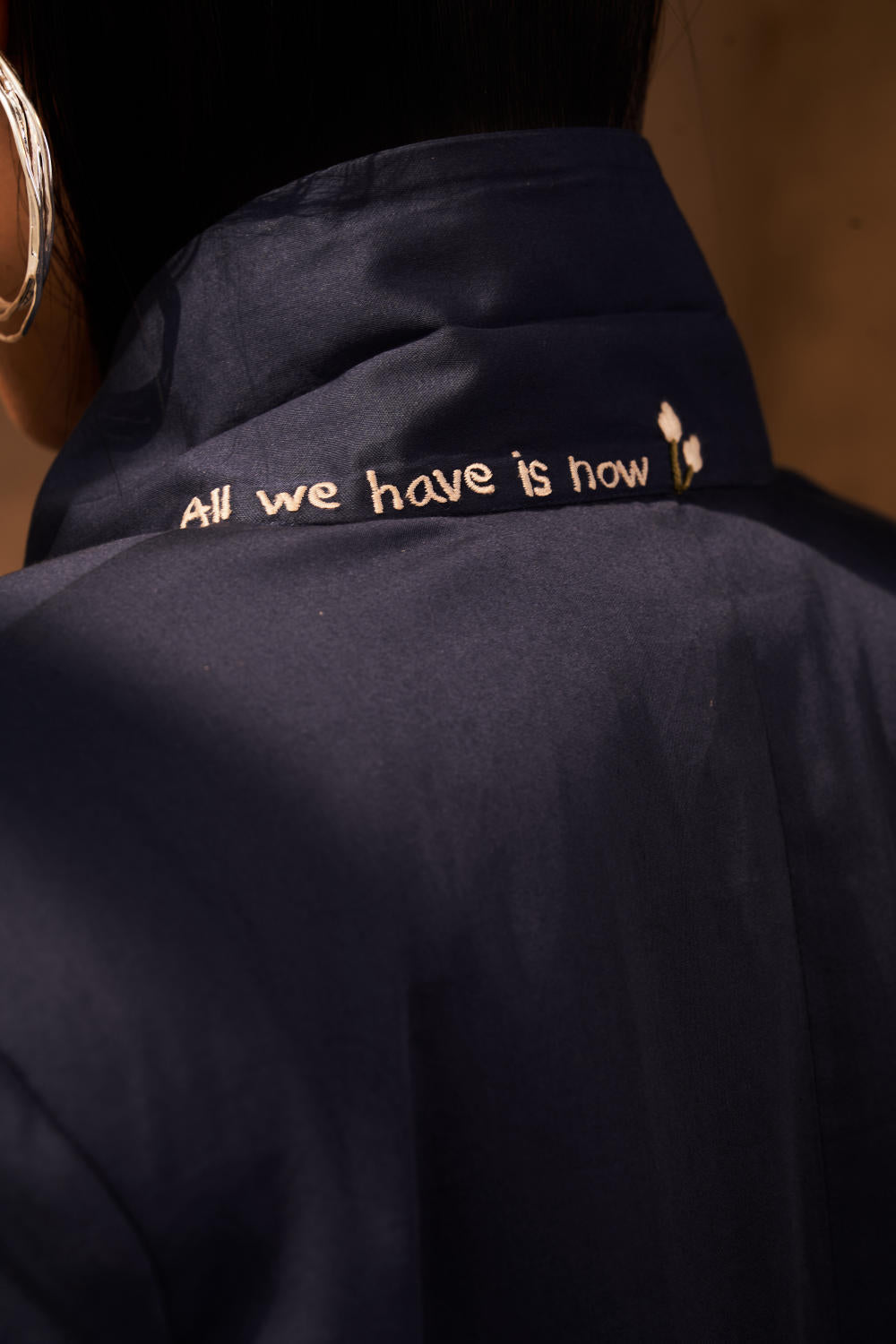 Relaxed fit, long-sleeve jacket that buttons at the front, crafted in azo-free dyed, organic cotton satin fabric that's machine and hand embroidered. The cuff and hem lining is hand block printed with our signature Field of Flowers motif using azo-free dyes. An everyday blazer is perfect staple especially for those going from work to play - an easy, effortless addition to any look that gives it some extra green flair.