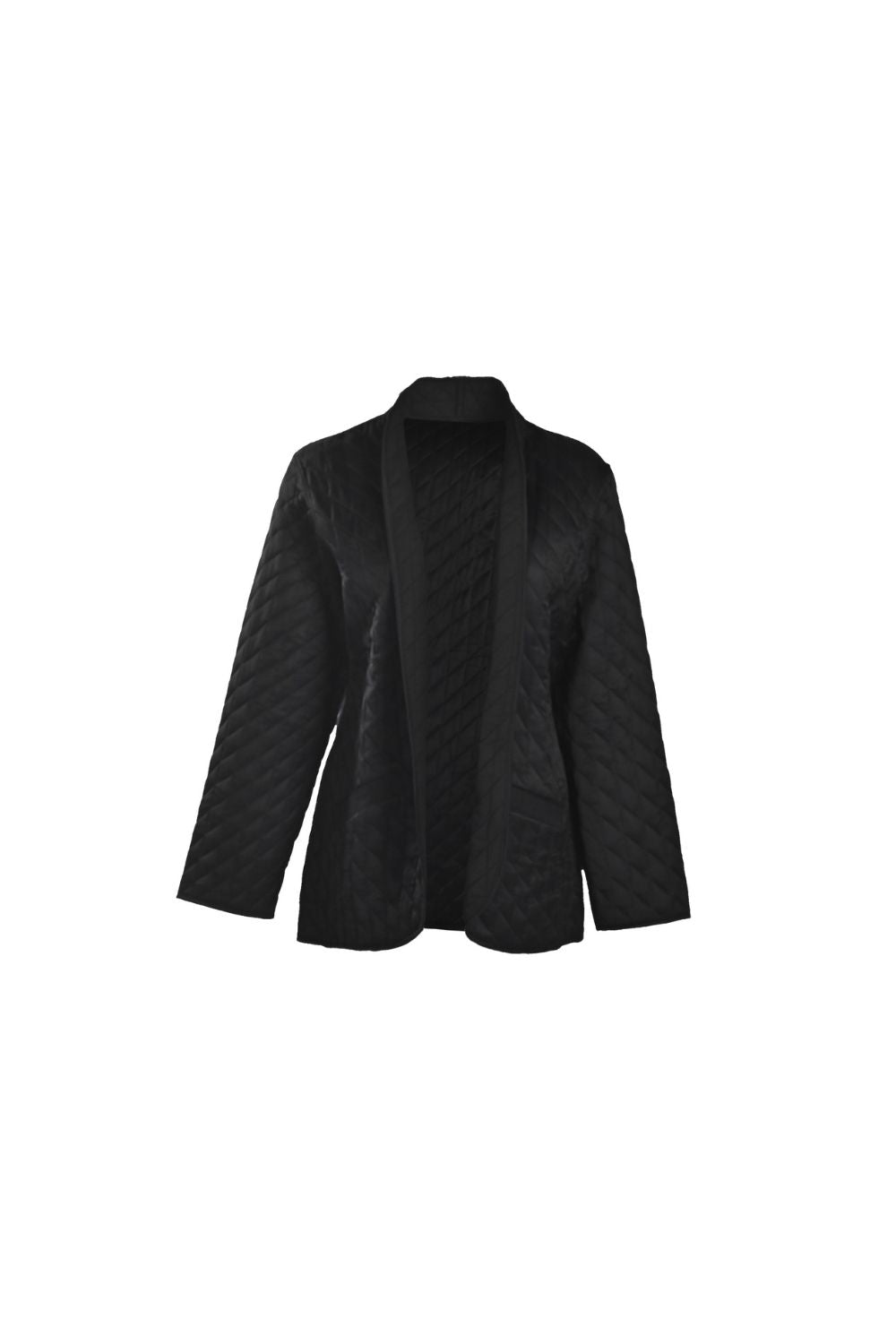 This mid length jacket is quilted with cotton wool & comes with a belt.It a has cotton mul on one side and cotton satin on one side.