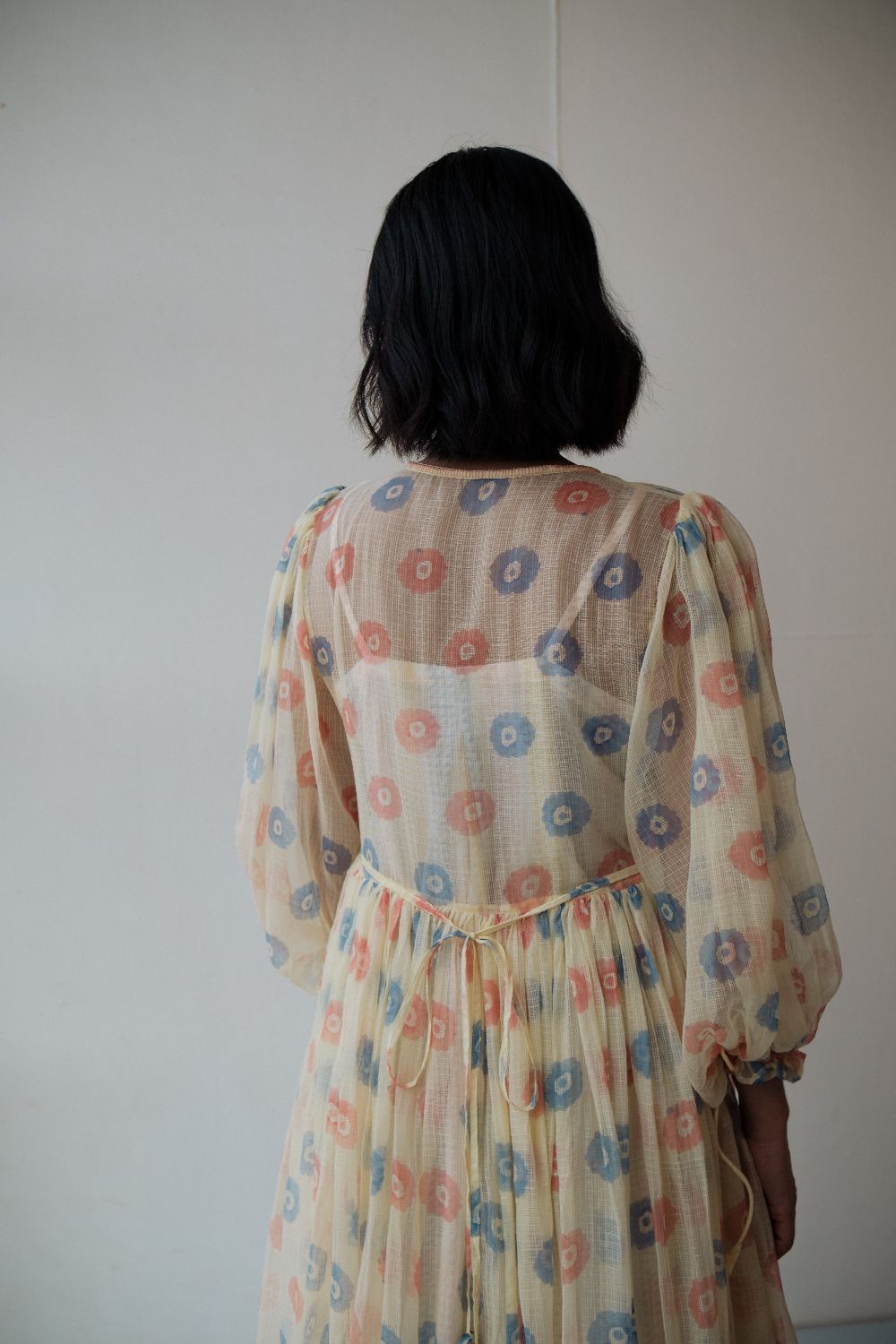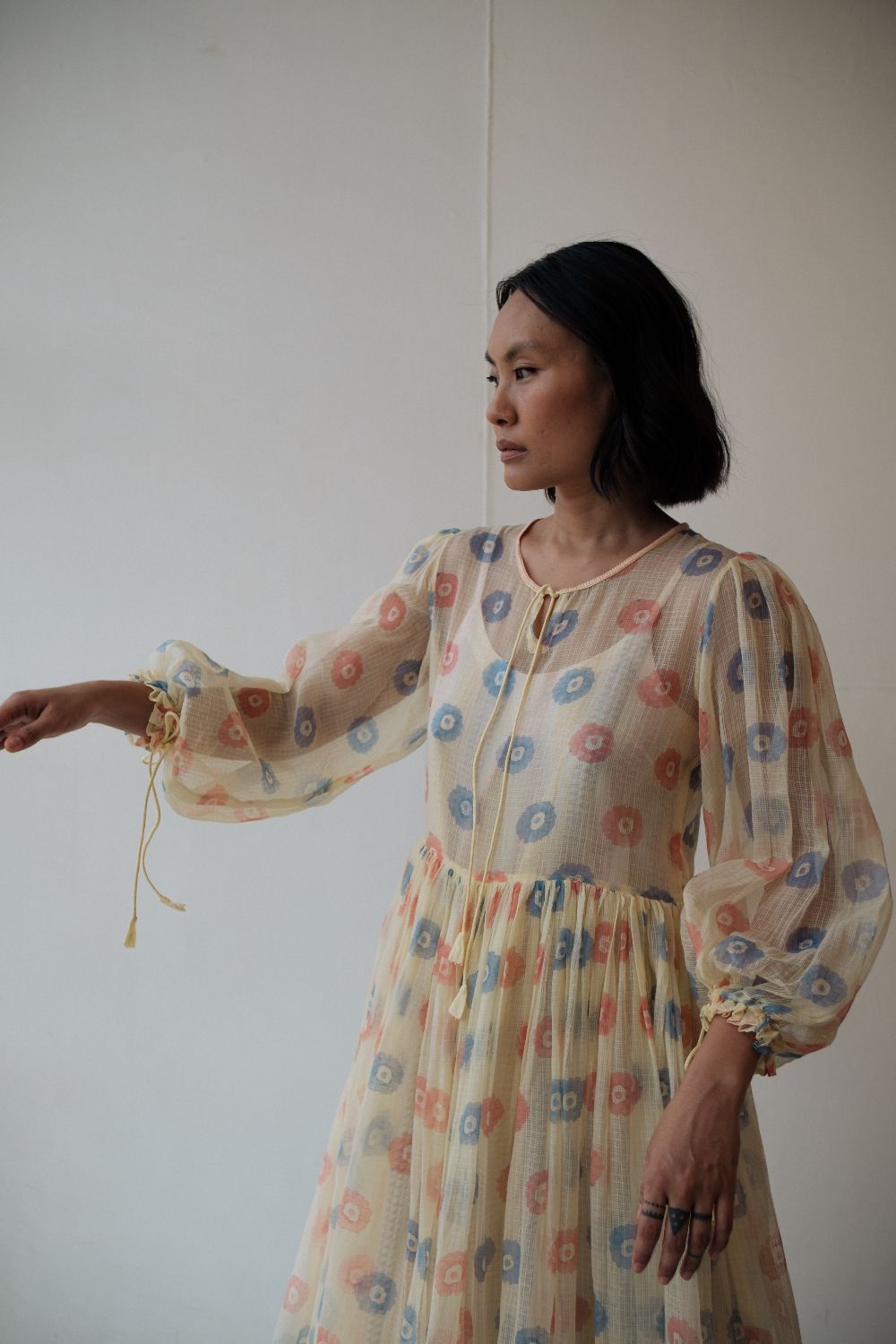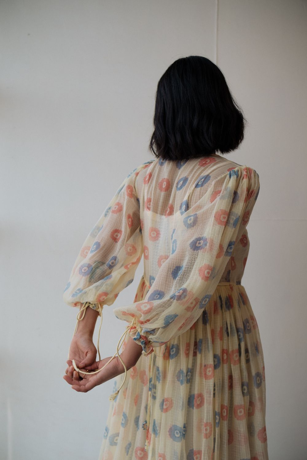 printing details. Paired with a adjustable strap slip dress in hand-block