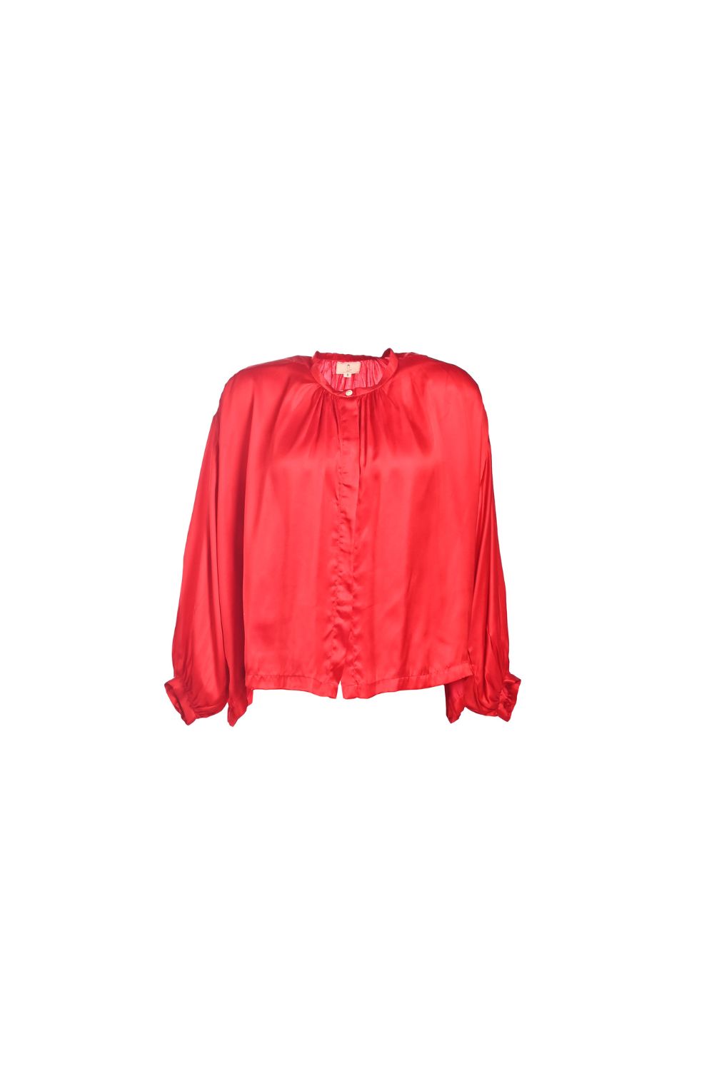 Satin shirt with front buttons made with mother of pearl.This top has front pleats and fits loosely.