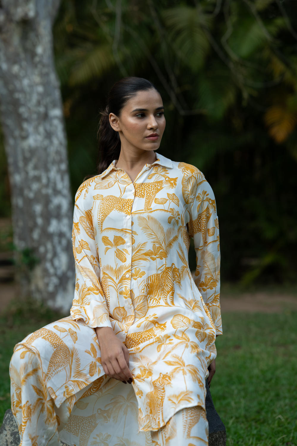 Easygoing yet elevated, these pants feature a relaxed fit with an adjustable drawstring waist. Whether paired with the matching tropical shirt, thrown over a swimsuit, or styled with a fitted tank, they’re meant to move with you, light, breathable, and adaptable.