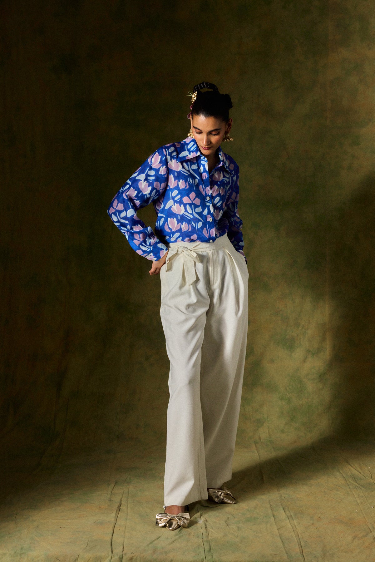 A classic button-down shirt in a JODI way. Handblock printed and crafted in rich silk, you can pair it with your favourite pair of trousers for work days or dress it up for glamorous evenings.