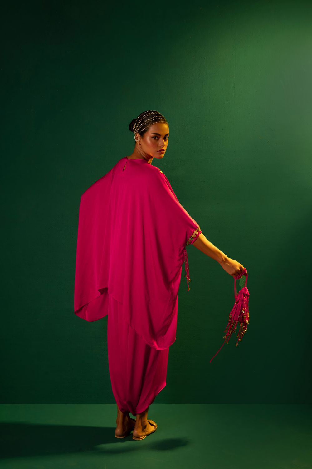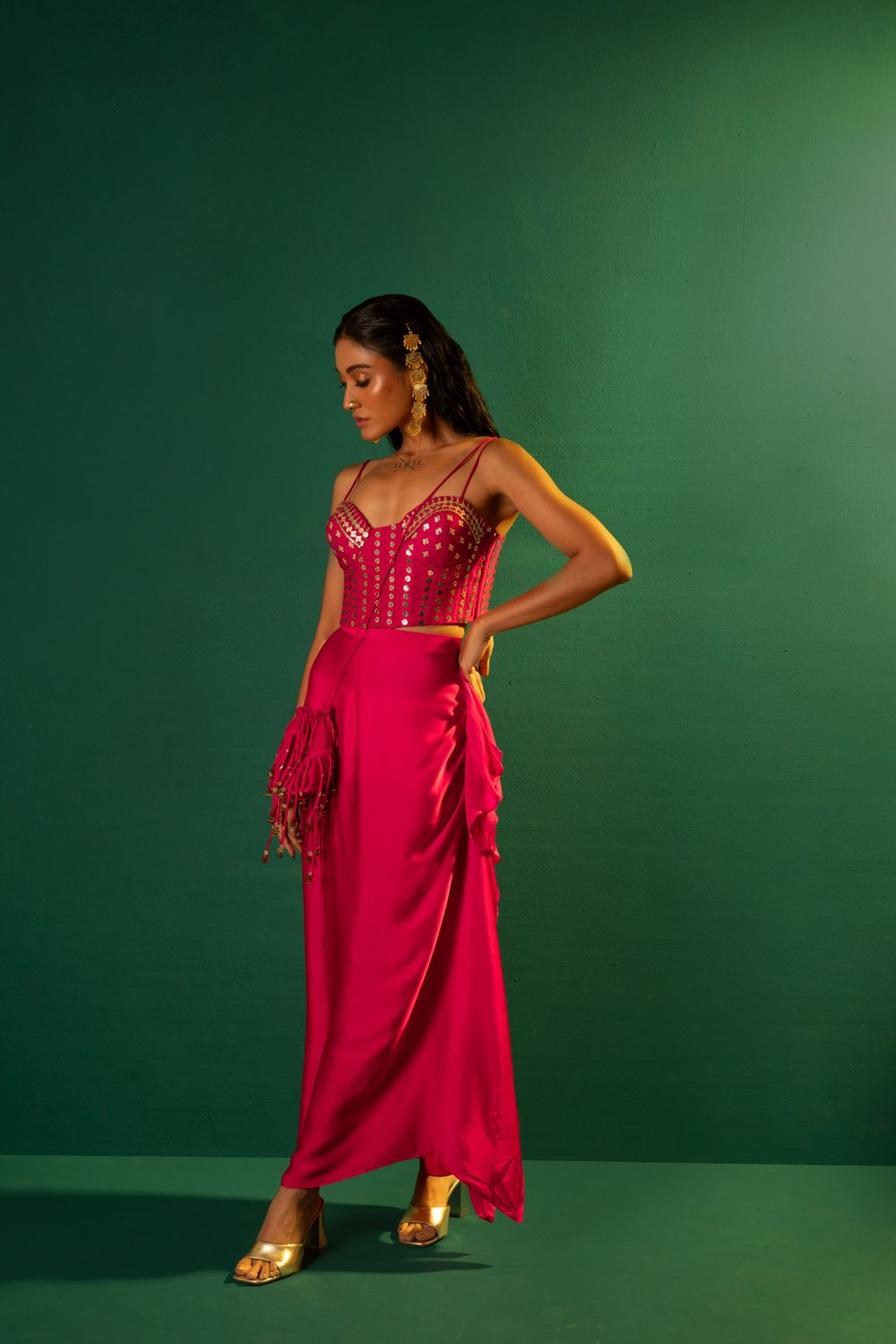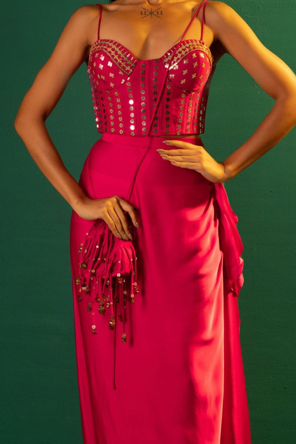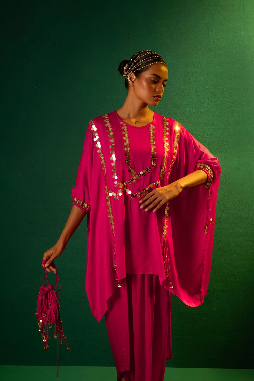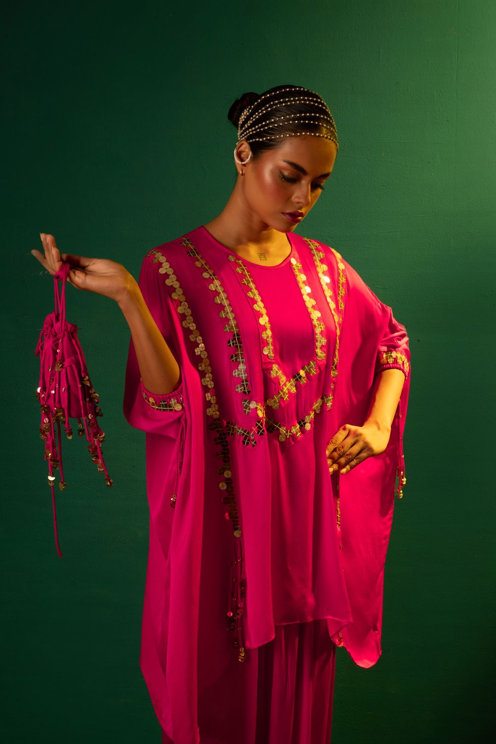 Hand crafted sequin fringes are embellished on satin to create a complete look with the matching outfit from Chamkeen collection