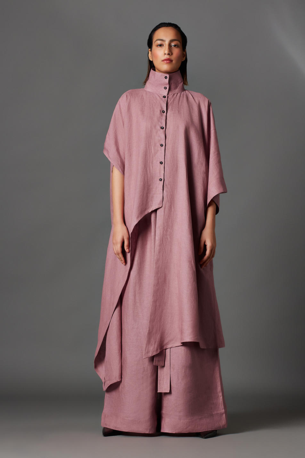 LONG HALF KAFTAN SHIRT WITH HIGH COLLAR,DROP SHOULDER SLEEVES AND HALF BACK BUTTON DOWN PLACKET