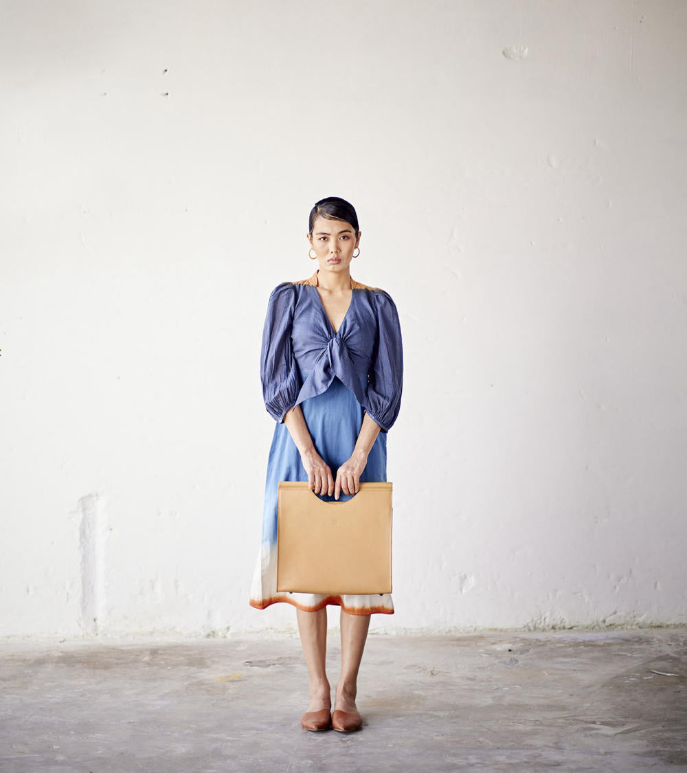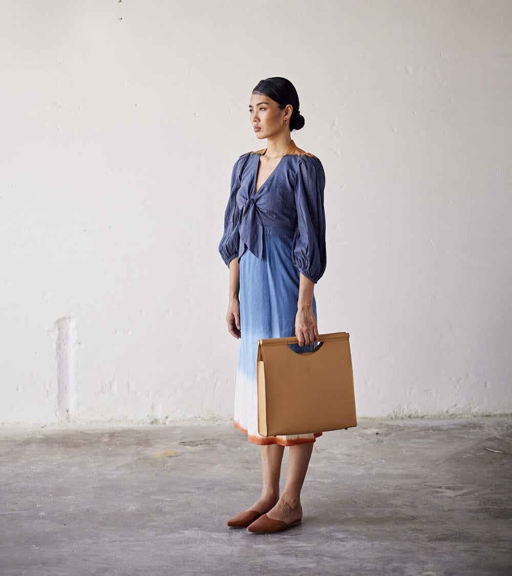 Rooted in handloom cotton and natural dyes, Khara Kapas works with the simplest geometry — circles, squares, triangles — and turns them into silhouettes that feel effortless, global, and emotionally familiar. There is a stillness to their clothes, a sense of returning to slower rhythms and honest materials, without ever losing relevance.