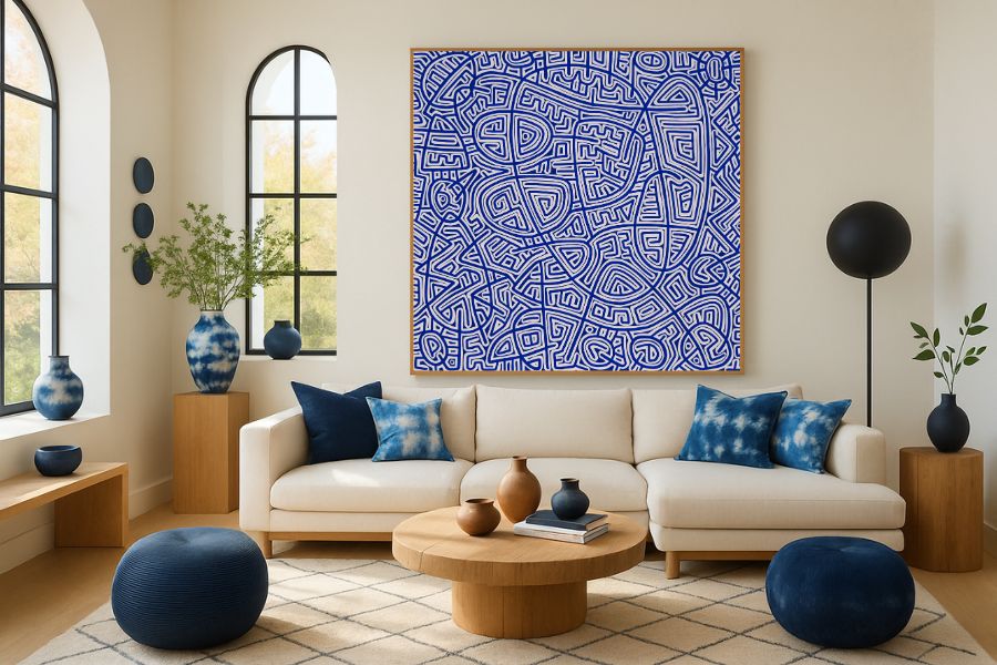 Bhuwal’s artistic journey began with a deep engagement with tribal and folk art. He was fascinated by the rhythm of the background — the negative space that often supported the central subject. In his current series, Urban Crowd Field, those very backgrounds take the lead. What was once peripheral now becomes the narrative itself.