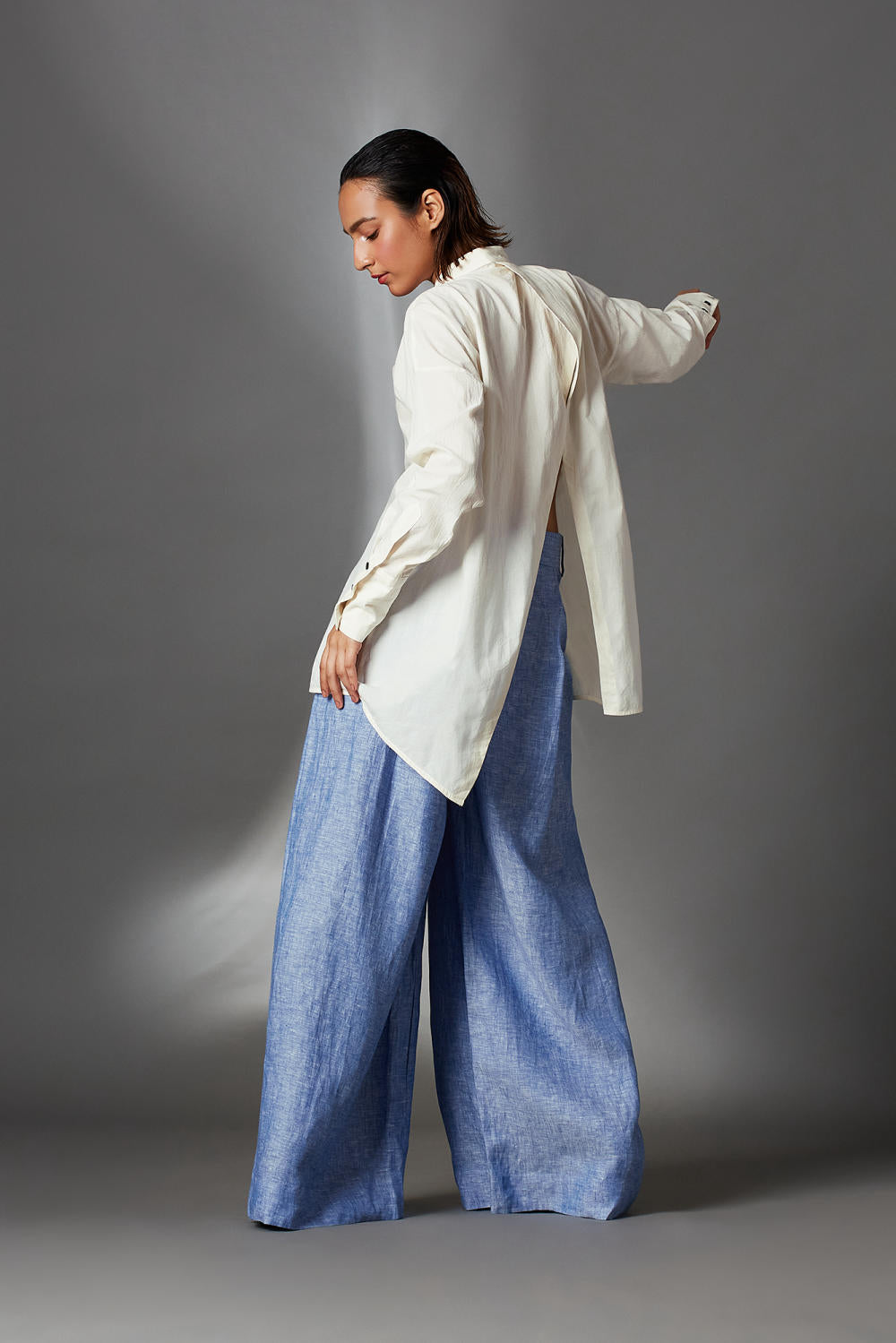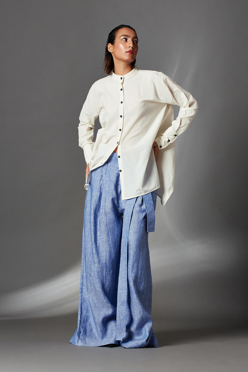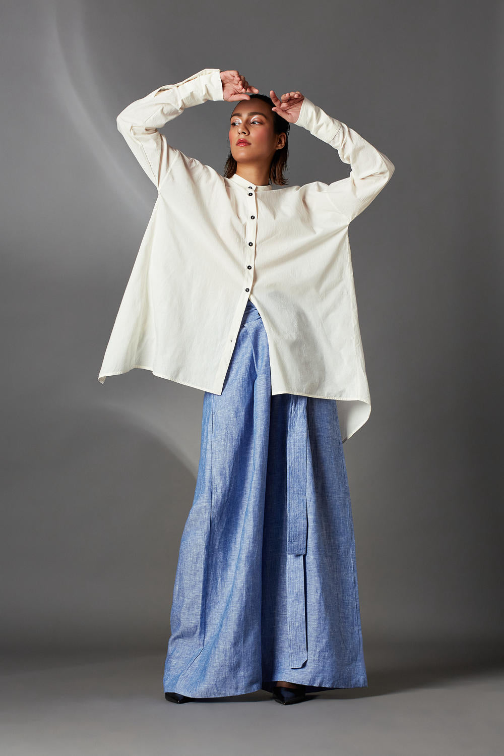 SHIRT WITH CROSS BACK OPEN, DROP SHOULDER, REGULAR FULL SLEEVES AND BAND COLLAR.