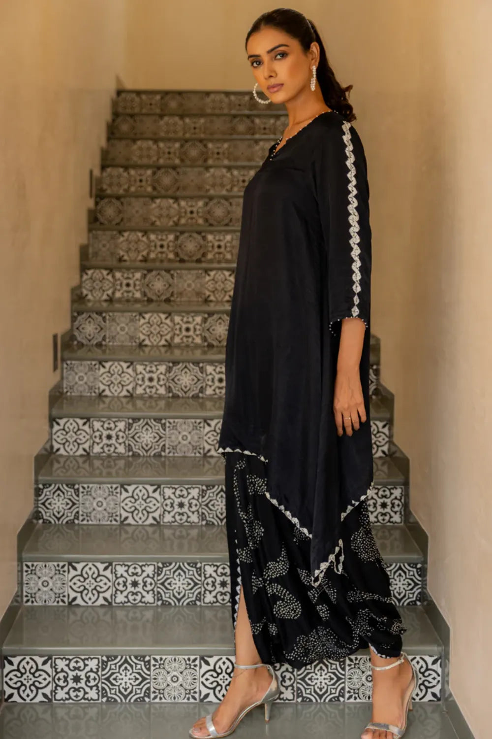 RYE BANDHANI DHOTI STYLE SKIRT PAIRED WITH AN ASYMMETRICAL TOP