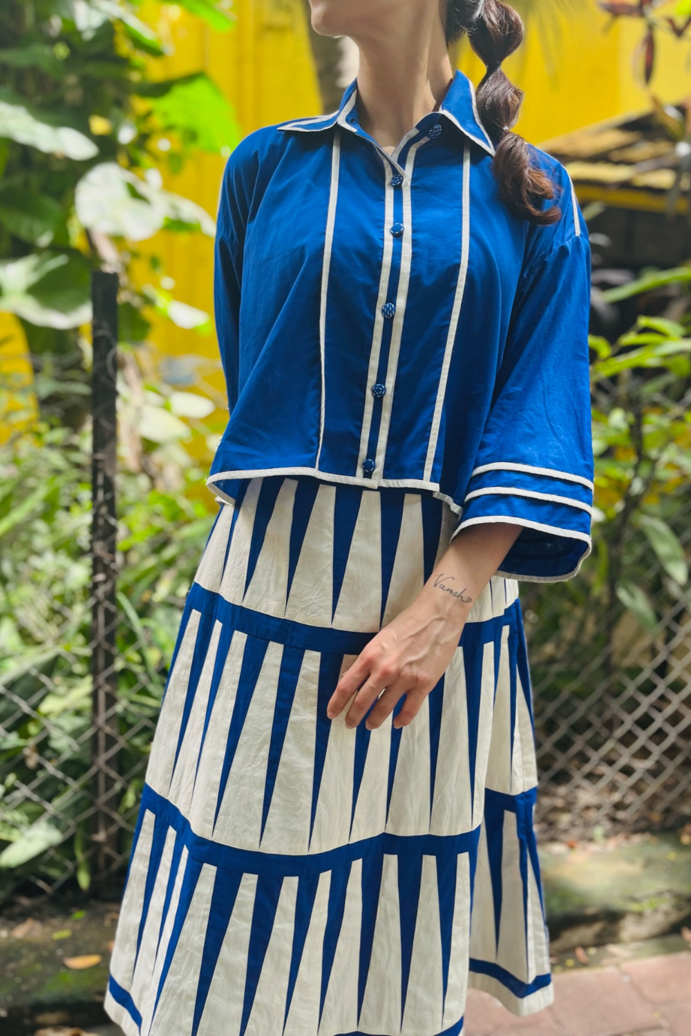 Patchwork, hand-stitching, appliqué, natural dyeing, layering — each technique is a way of honouring the textile traditions that shape India’s visual language. Their dresses, wraps, jackets, and separates carry that unmistakable Ka-Sha signature: fluid, tactile, deeply human.