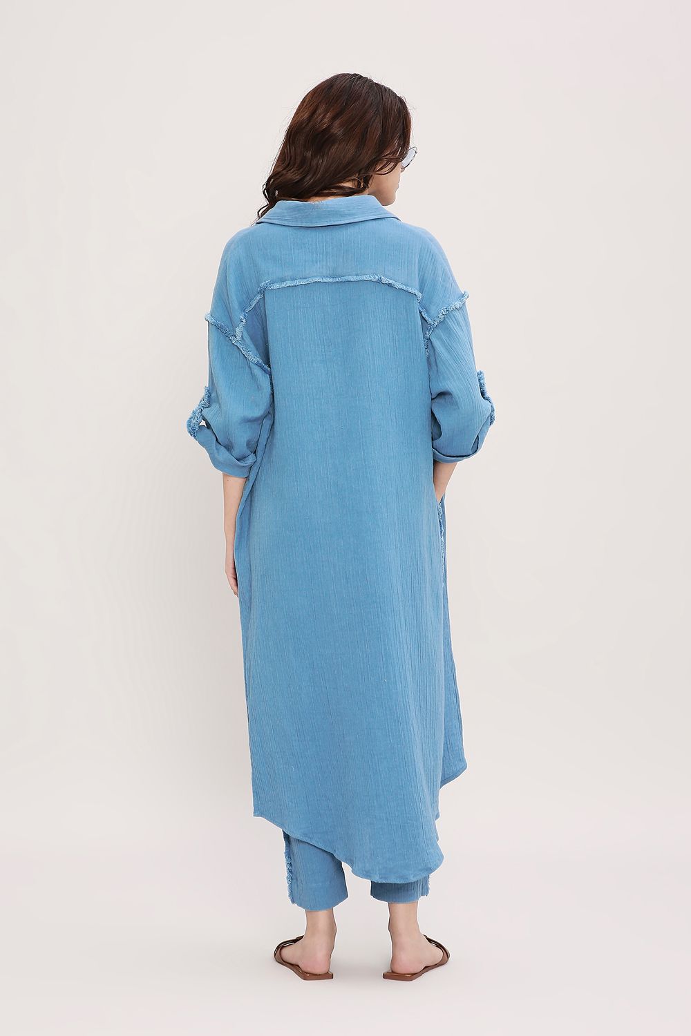 Long shirt in soft crush cotton with front button opening, fringed details and comfort fit. Comes with our tassled elasticated pants with side pockets. Total 2 pcs.