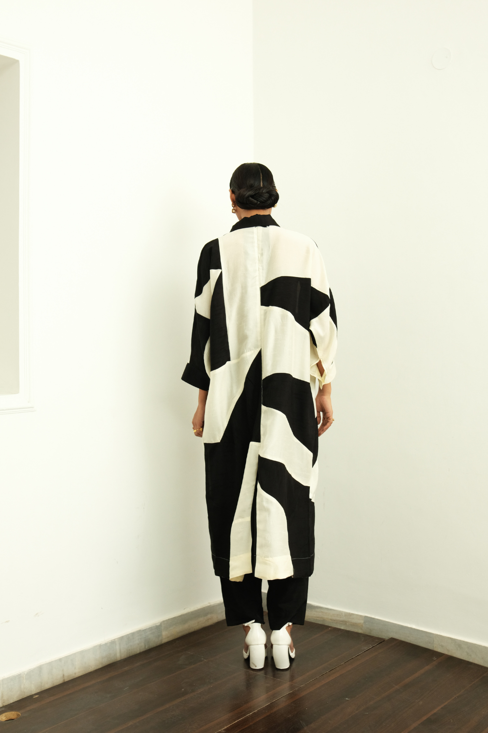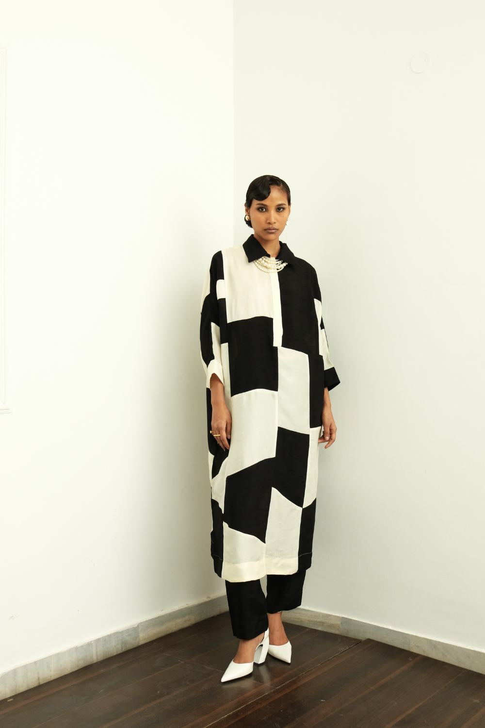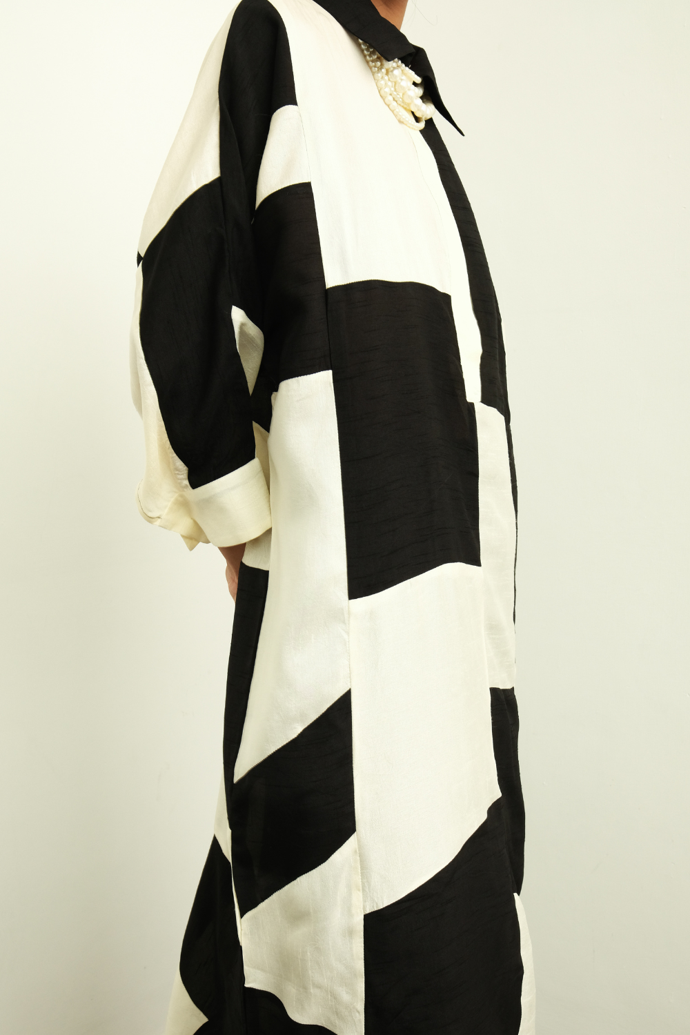Dress/Kurta: Colorblock and patchworked featuring raw silk fabric. Shirt collar with half placket.Side seam pockets. Perfect for Dinner scenes & festive occasions. Pair with our raw silk tapered pants to complete the set.—single Piece.