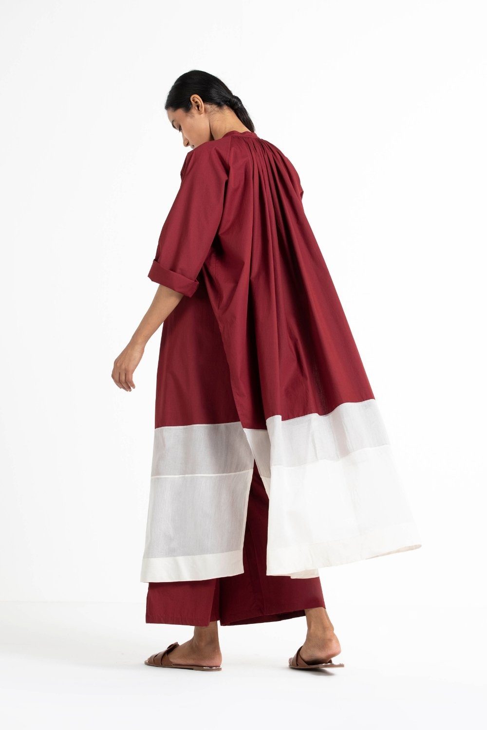 Clever cuts, asymmetric patterns, a neutral palette and simplicity of geometric details form the core aesthetic of the brand. Their love for asymmetry and imperfection clearly reflects in their silhouettes and hemlines. The label is a modern mix of conceptual and wearable clothing which defies age bar as the ensembles exude comfort, more so with their signature anti-fit coords.
