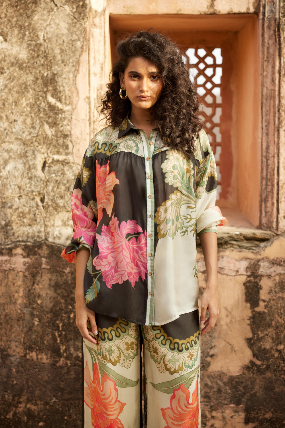 Our co-ord set is an epitome of a relax day combining comfort and style effortlessly with a touch of eleganca. It transforms into the perfect airport look for stylish and relaxed ensemble. It is tailored from pure habutai silk and it includes shirt and a trouser.