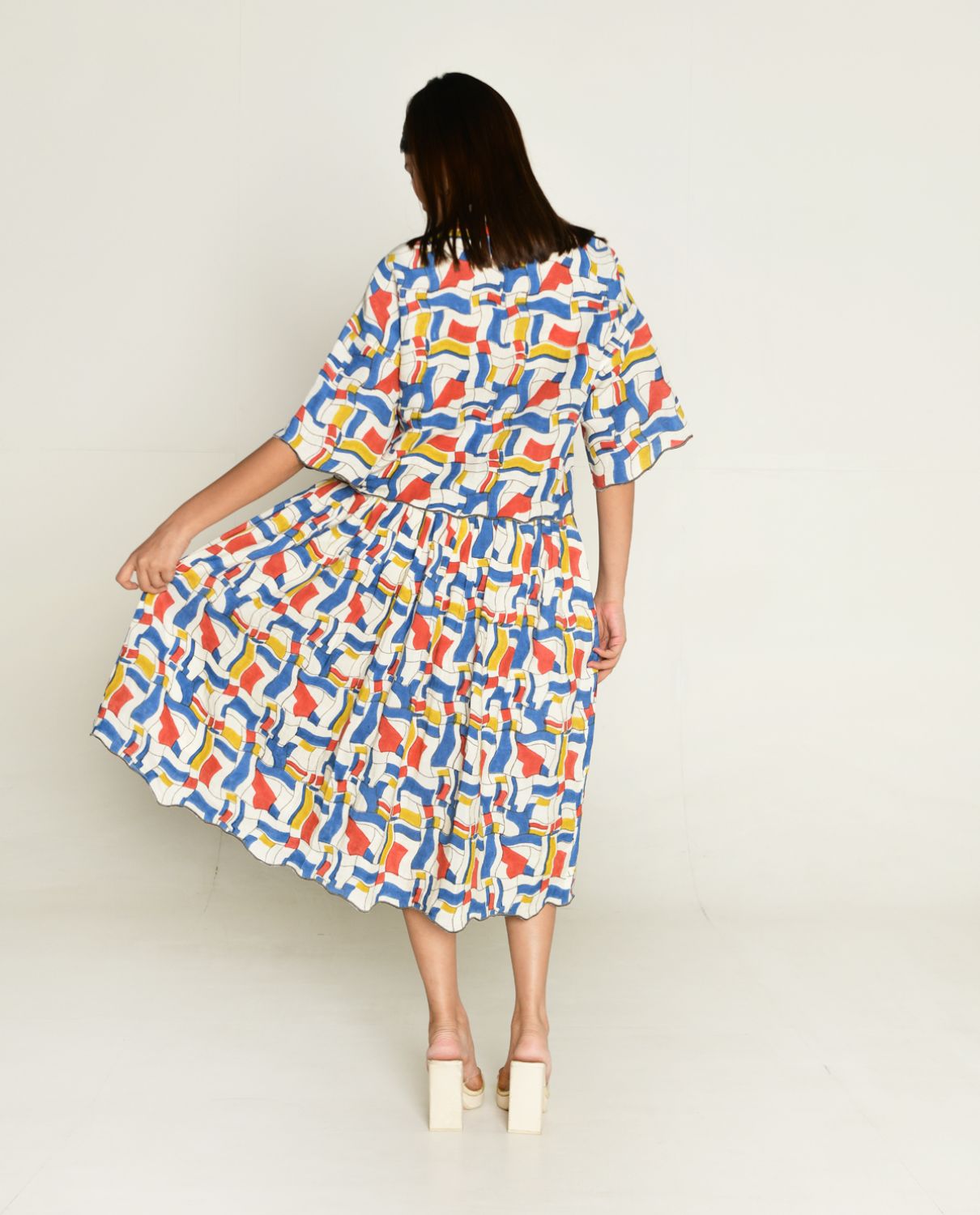 Dabu/Bagru from Rajasthan and hand block printing over handwoven fabrics from Bengal. RIAS calls it a “cocktail” of craft traditions, but it feels more like a conversation—between regions, between histories, between the past and the present. Their studio becomes the meeting ground where ancient mud-resist techniques and handwoven textiles find new relevance through contemporary design.