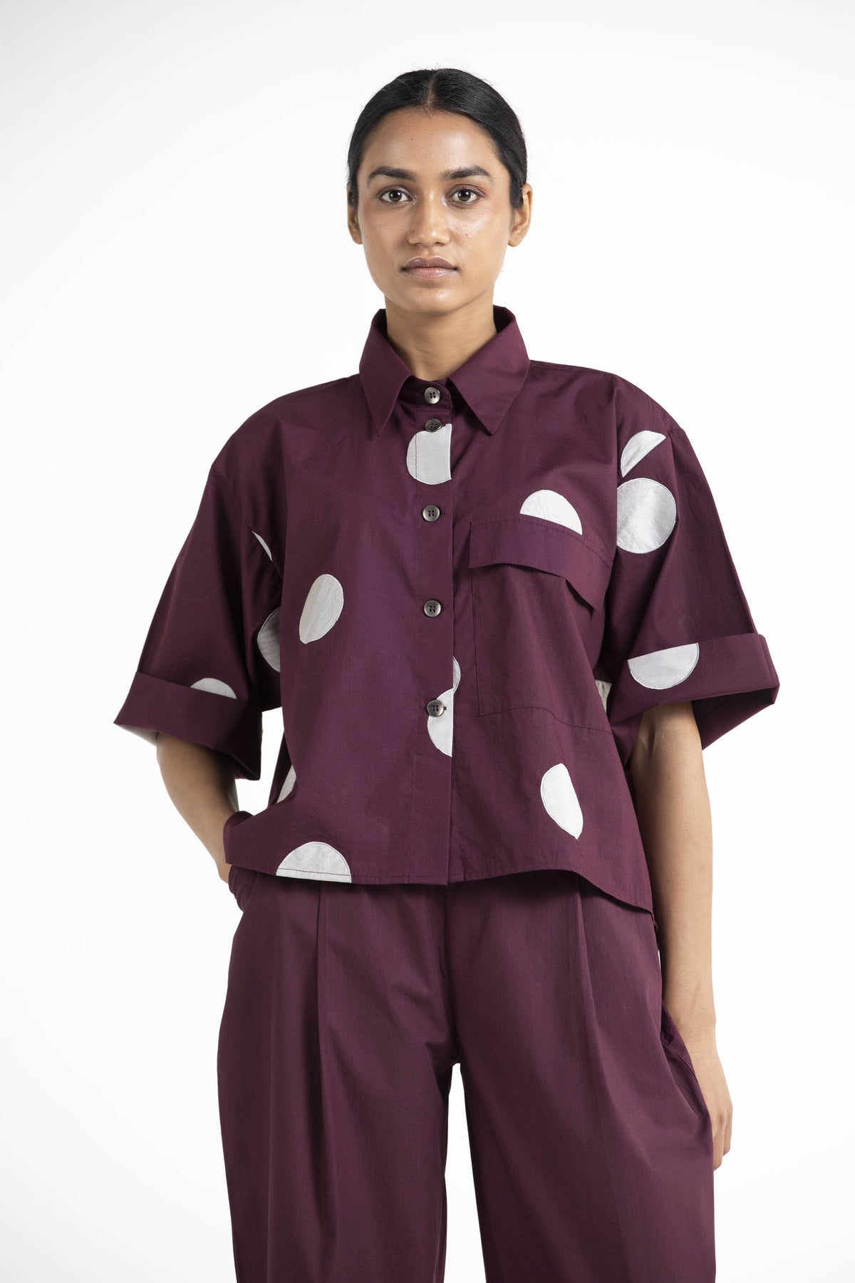 Short Top Co - ord Wine Polka Fashion THREE