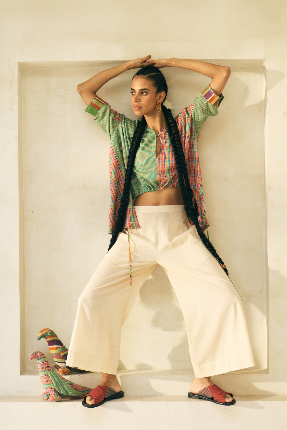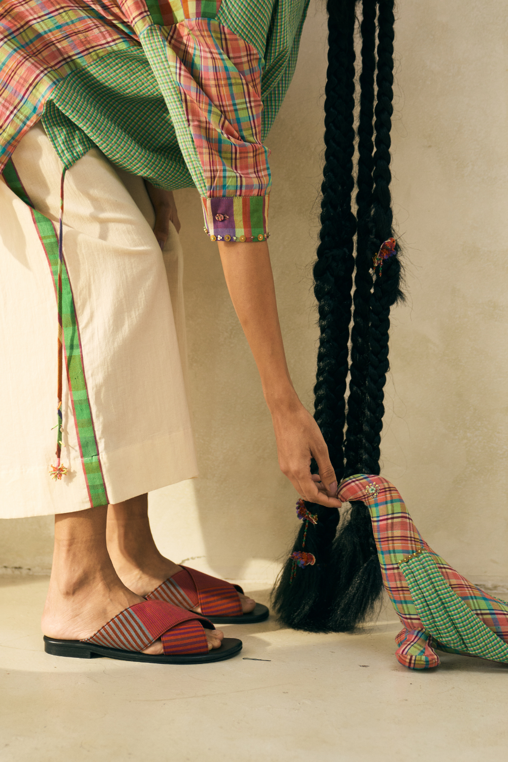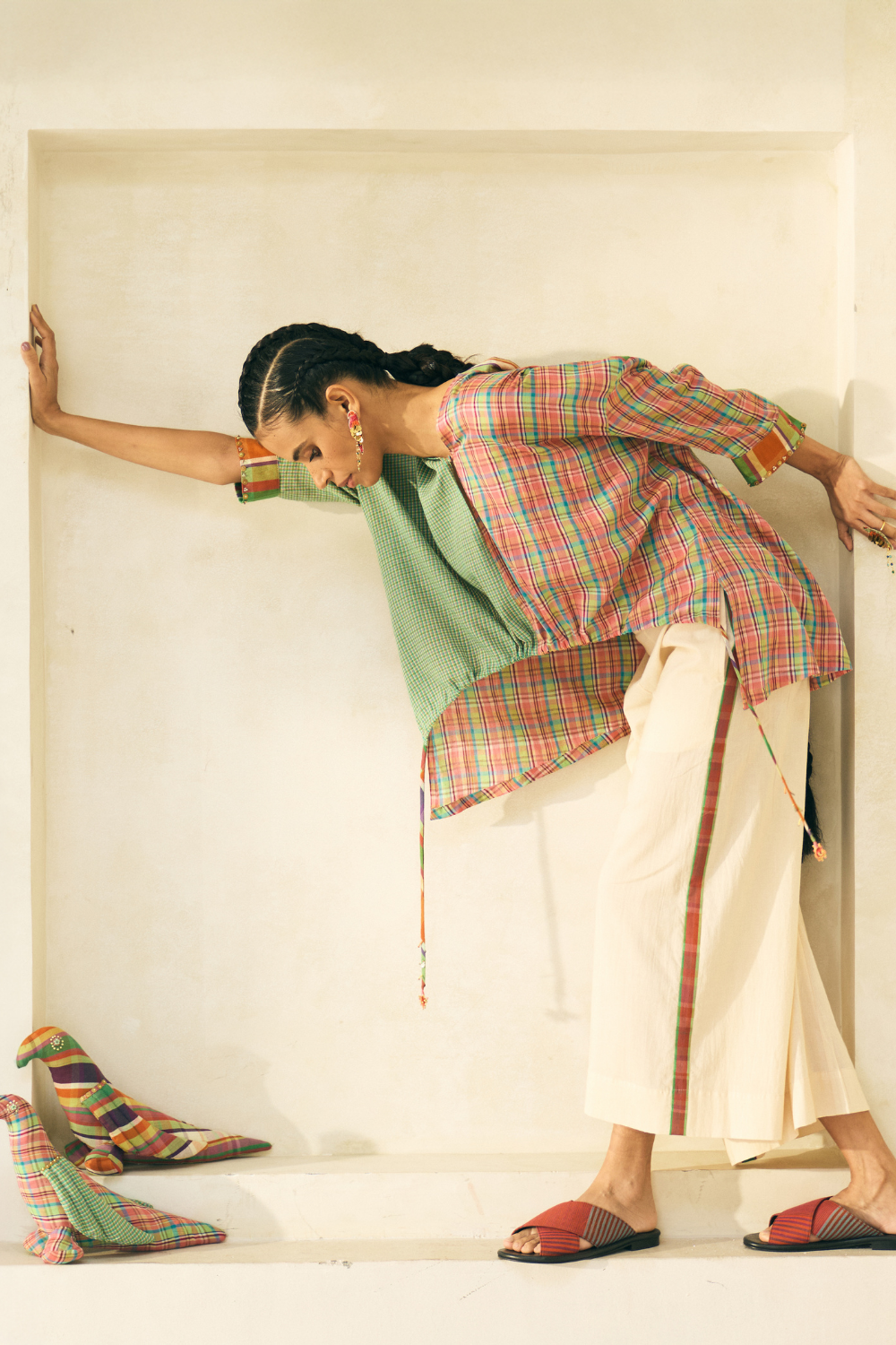 What sets Swatti Kapoor apart is the way she treats textiles as living beings — each with its own temperament, rhythm, and voice. Her garments don’t impose; they evolve. They drape the way water slips over stone. They hold the kind of ease that comes only from deep respect for material and maker.
