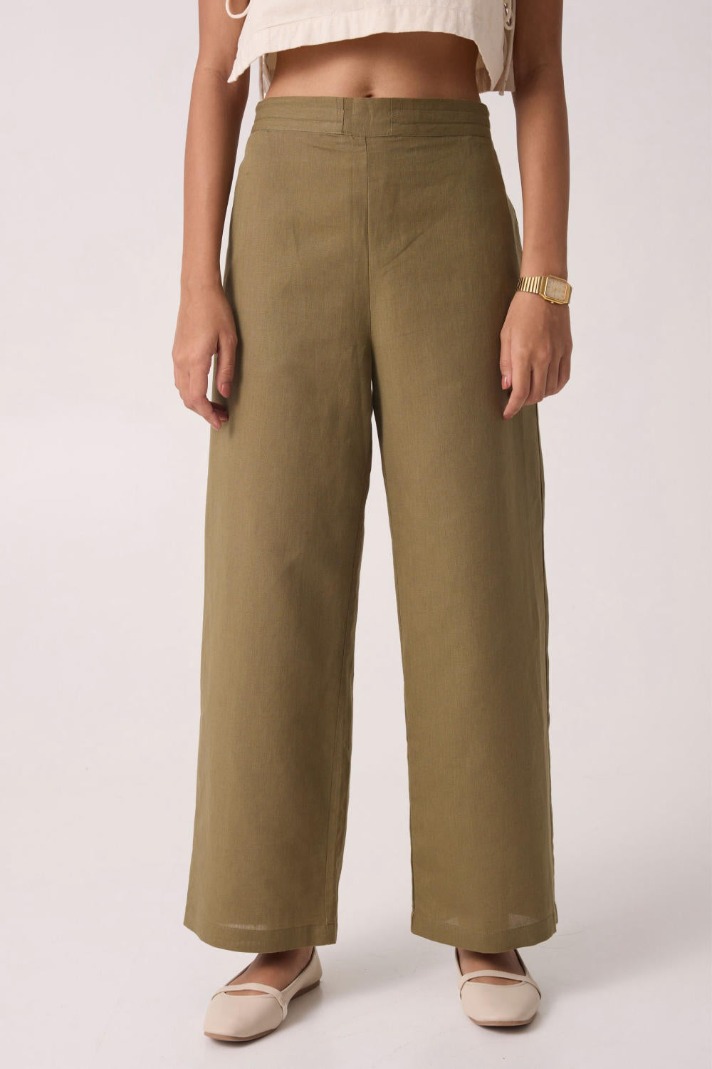 Paired with comfortable wide leg pants. Lightly elasticated at the back. The tunic and pants have in-seam pockets.