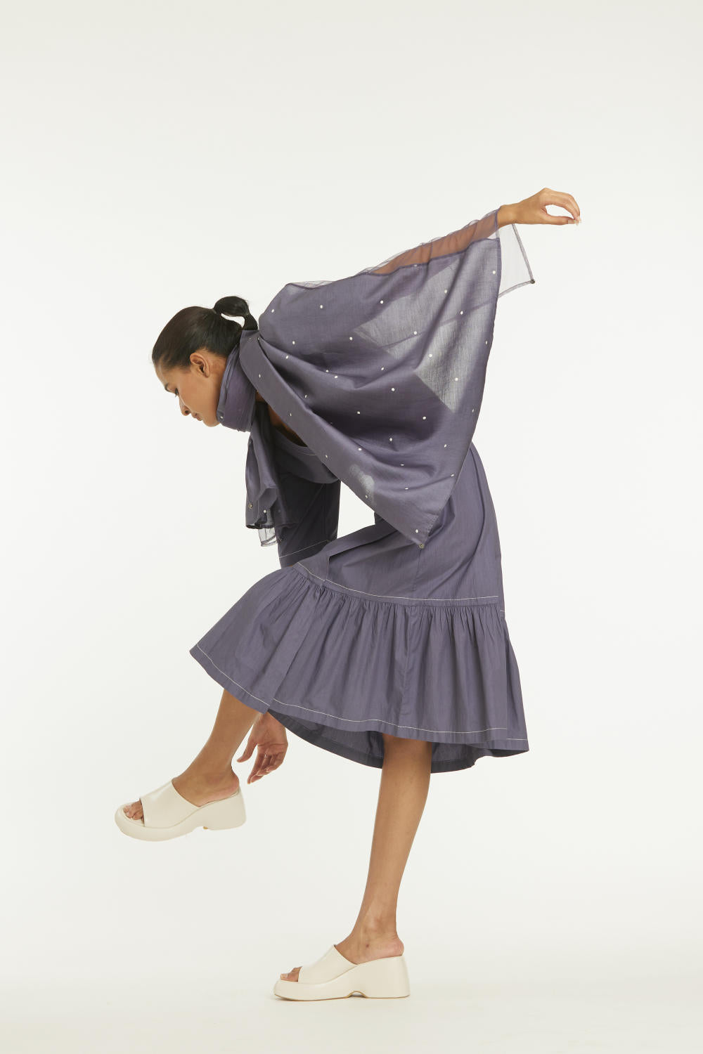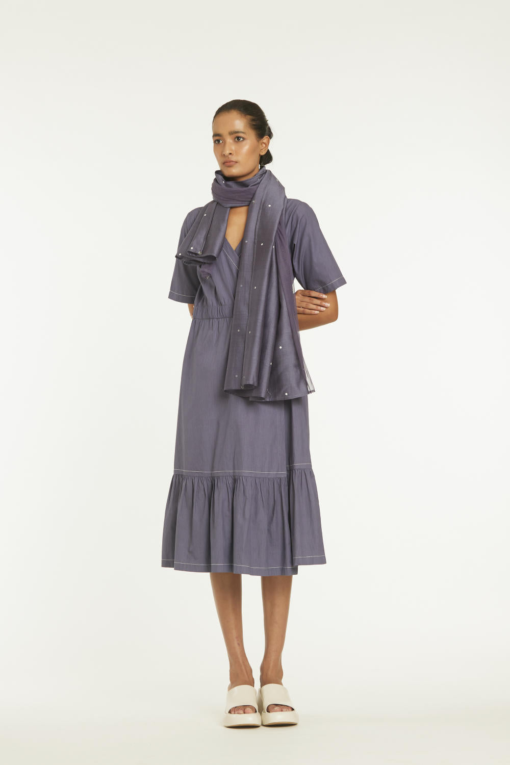 Panel Scarf with Net Violet Polka