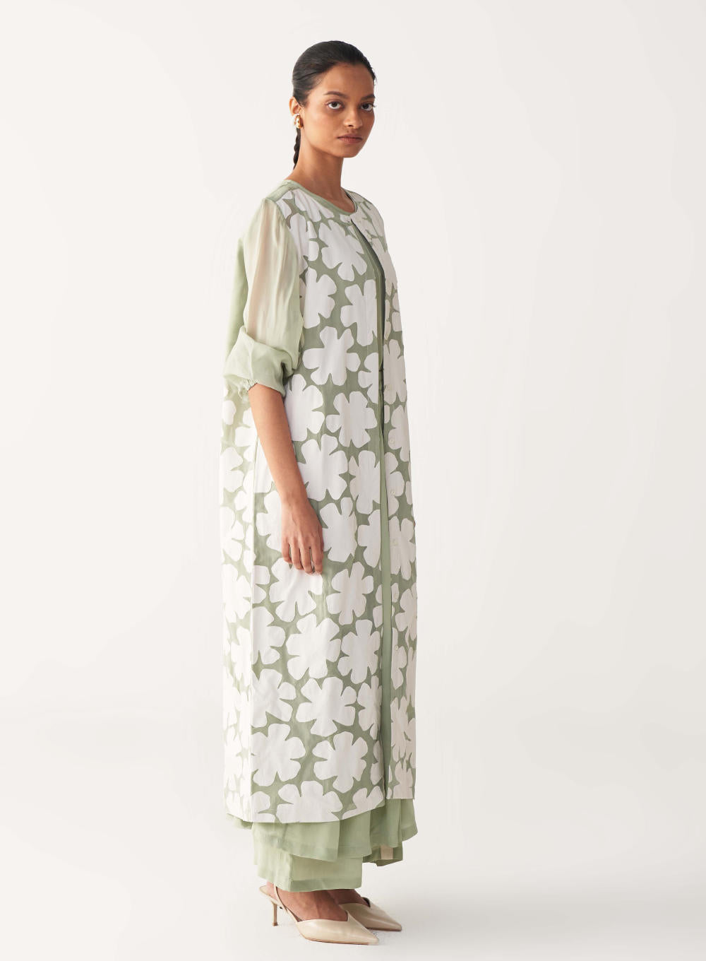 Product Type: FLORAL BACK YOKE JACKET + ROUND NECK TOP + SKIRT PANT