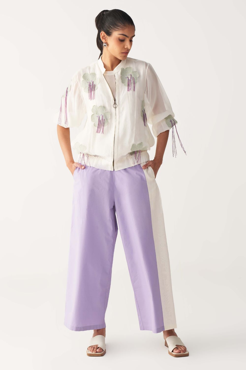 Product Type: FLORAL FRINGE BOMBER + SLIP + HIGH WAIST BROAD BOTTOM
