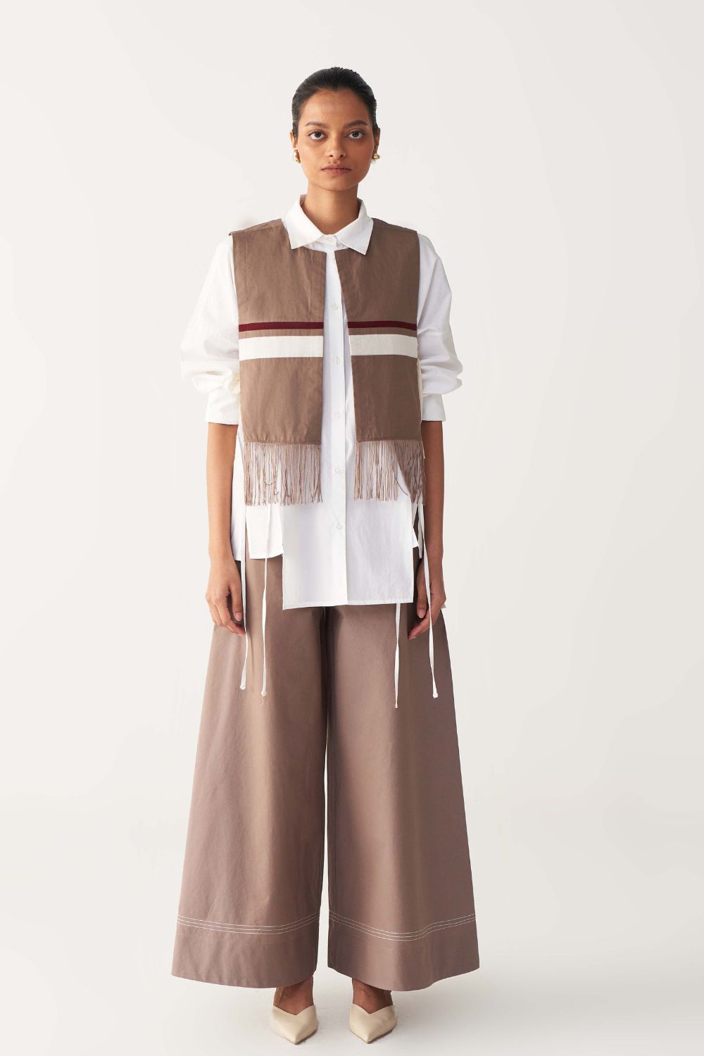 Product Type: FRINGE CROP OVERLAY + ANTI-FIT SHIRT + WIDE LEG BROAD BOTTOM
