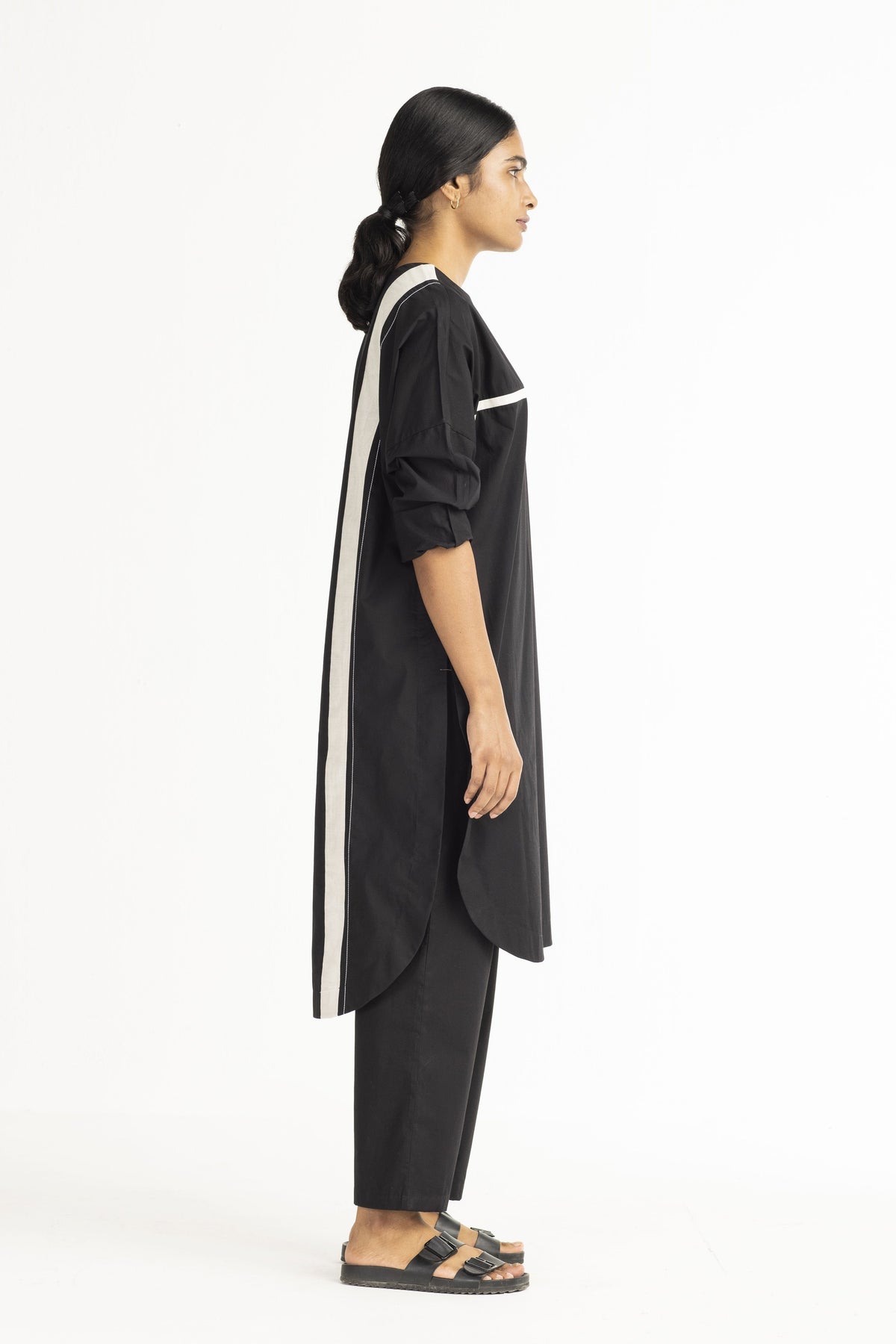 Clever cuts, asymmetric patterns, a neutral palette and simplicity of geometric details form the core aesthetic of the brand. Their love for asymmetry and imperfection clearly reflects in their silhouettes and hemlines. The label is a modern mix of conceptual and wearable clothing which defies age bar as the ensembles exude comfort, more so with their signature anti-fit coords.