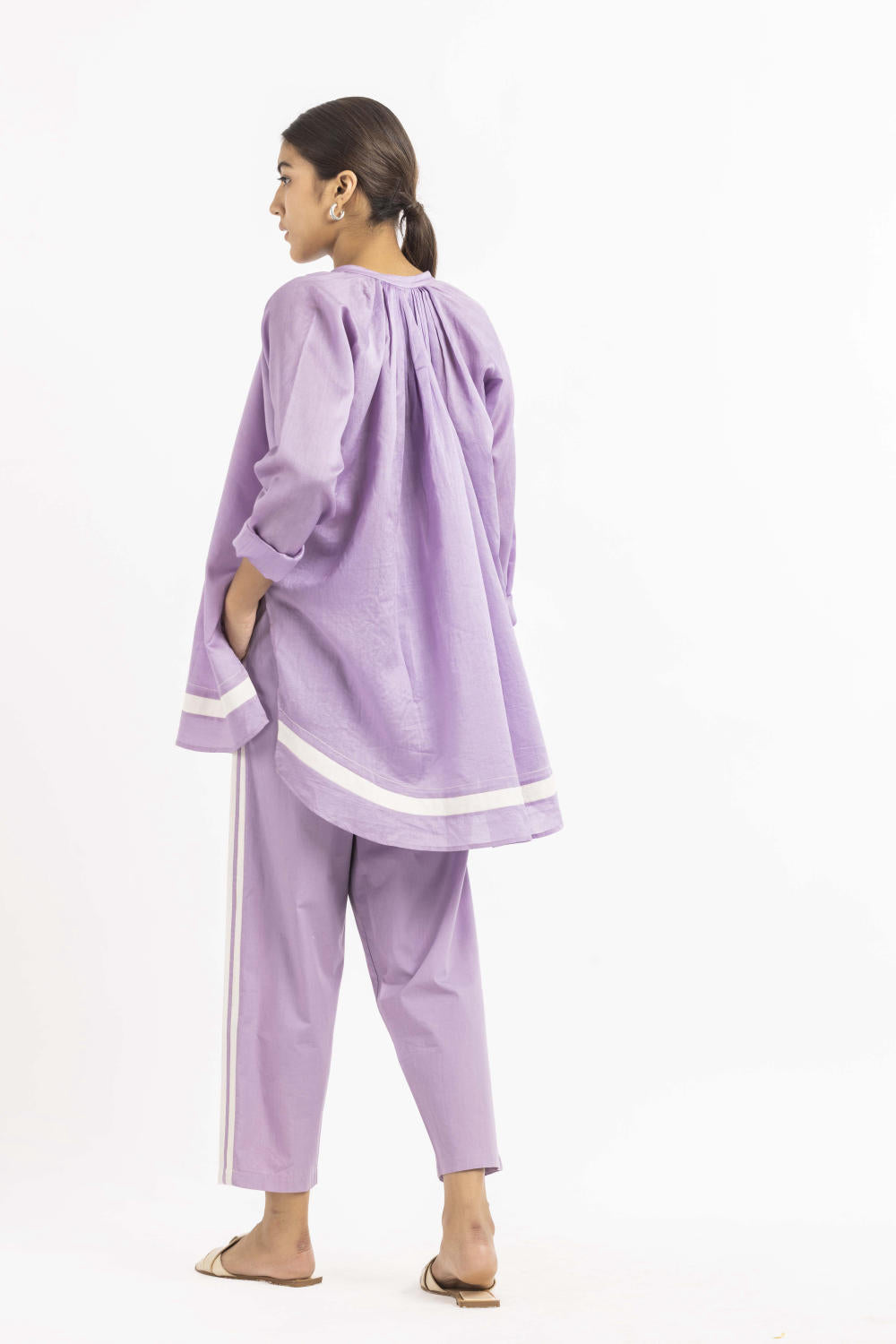 Clever cuts, asymmetric patterns, a neutral palette and simplicity of geometric details form the core aesthetic of the brand. Their love for asymmetry and imperfection clearly reflects in their silhouettes and hemlines. The label is a modern mix of conceptual and wearable clothing which defies age bar as the ensembles exude comfort, more so with their signature anti-fit coords.