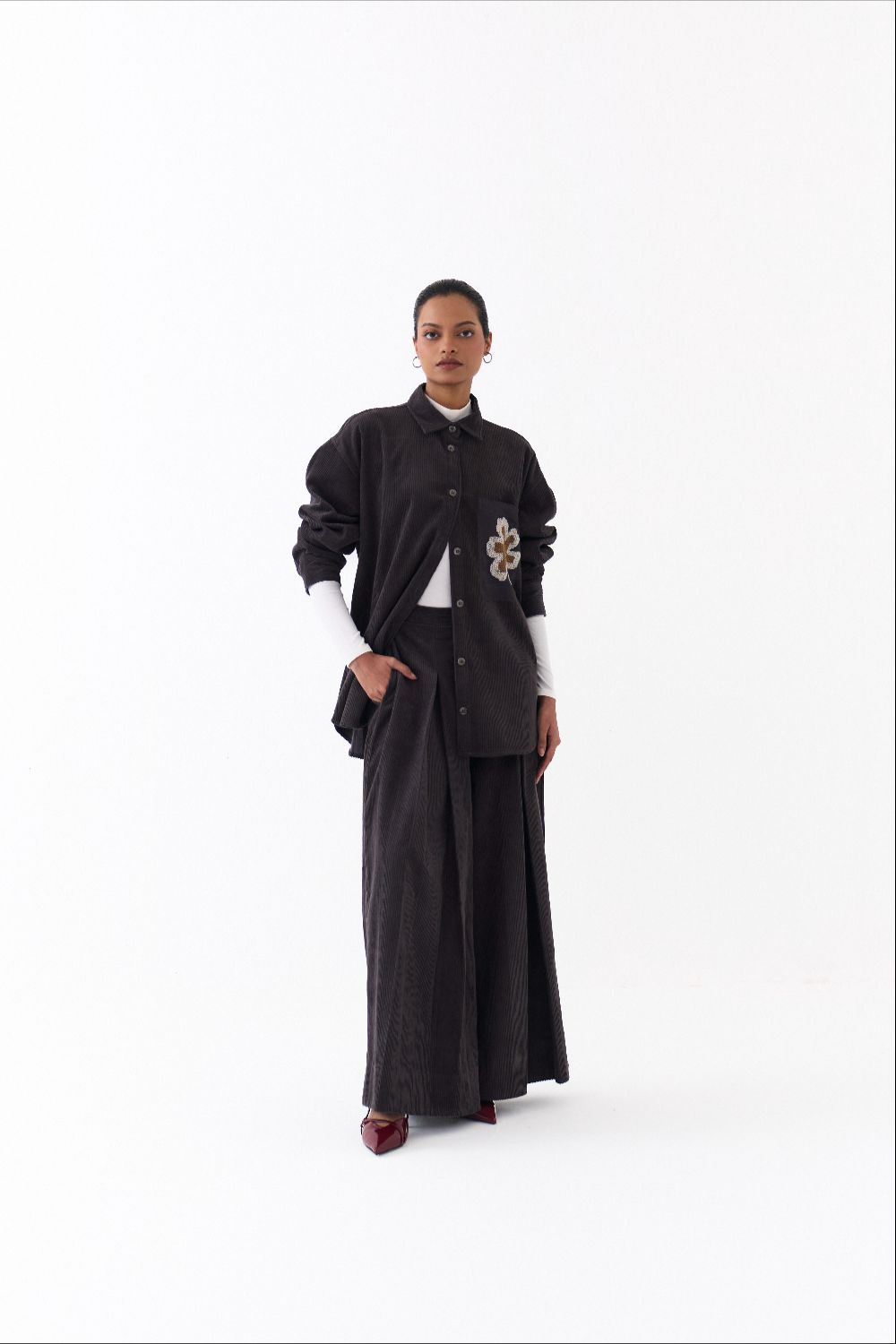 U HEM OVERSIZED SHIRT + INVERTED BOX PLEAT BOTTOM