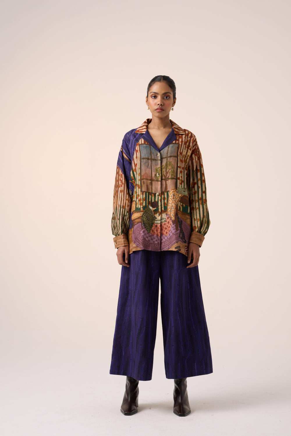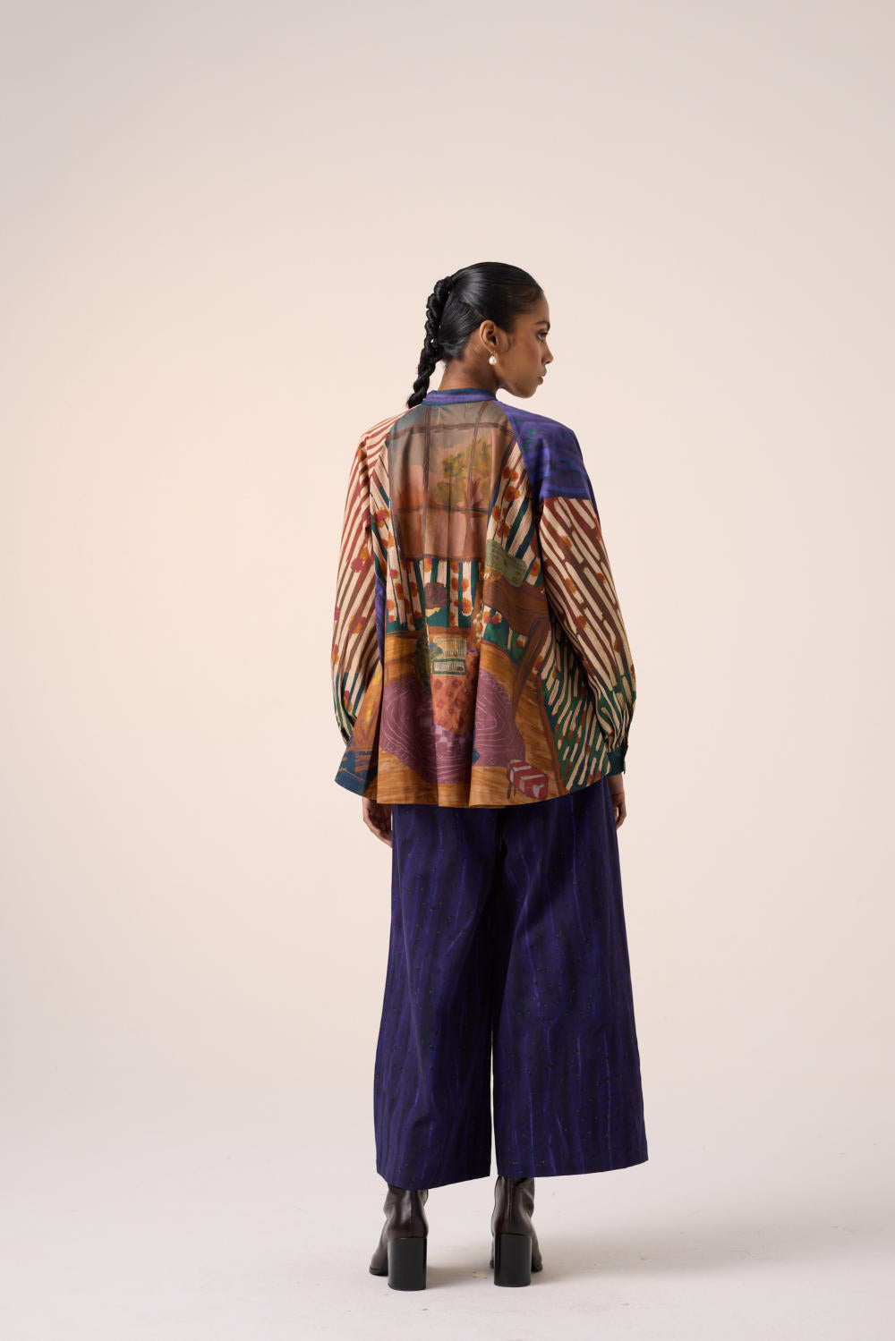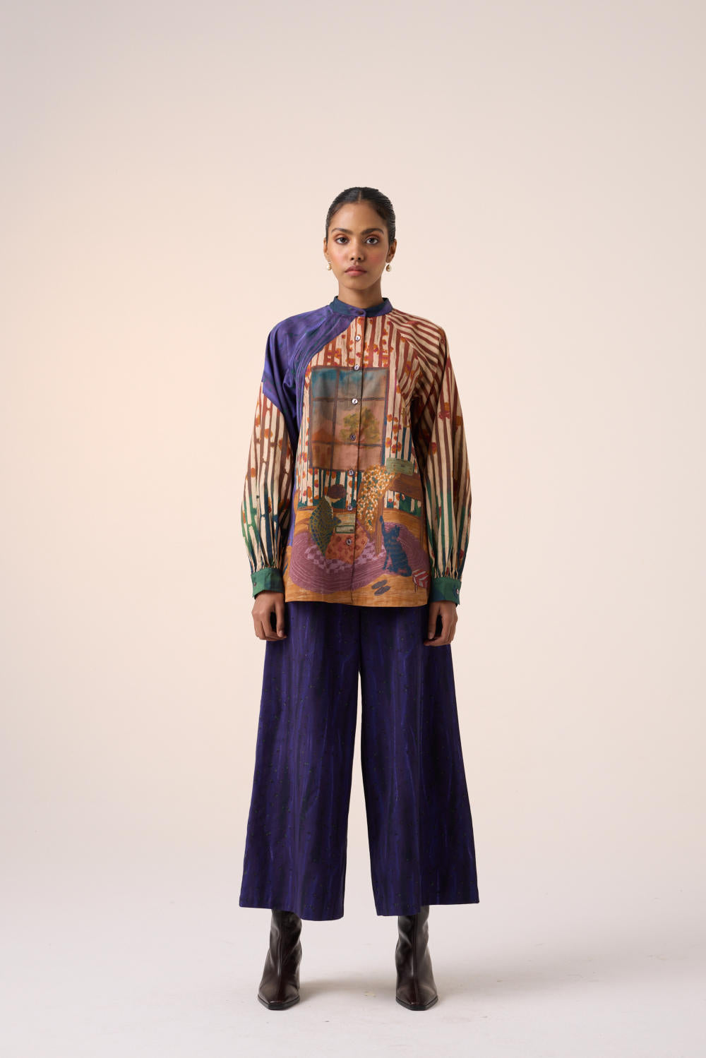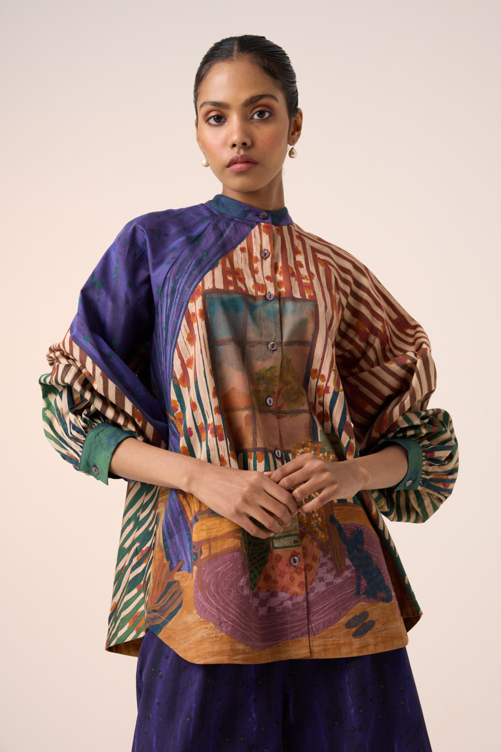 The A-line shirt is the perfect easygoing, carefree silhouette. This shirt is made in pure cotton fabric, in our calming home alone print. This shirt features raglan sleeves with button-down shirt detailing.