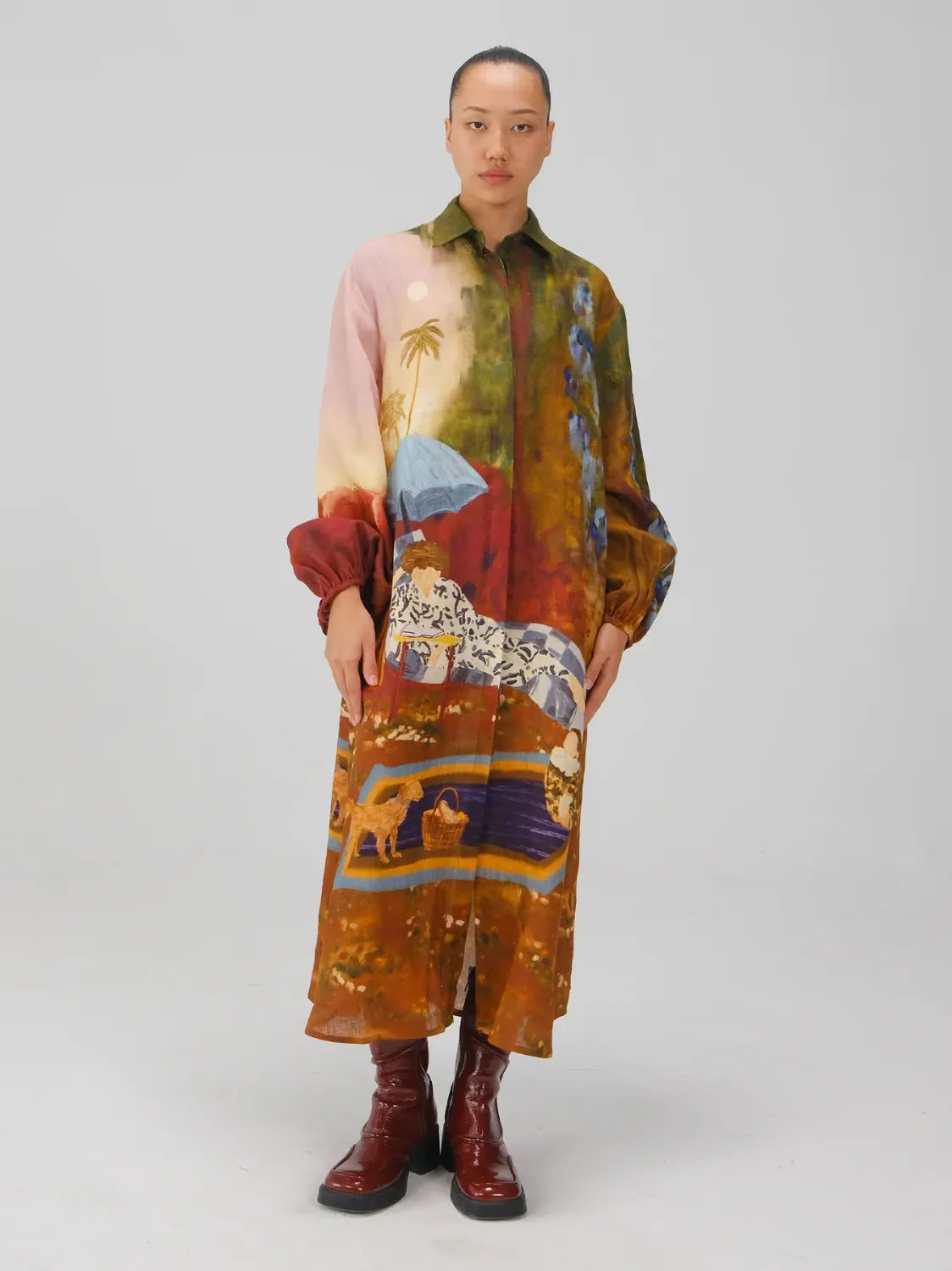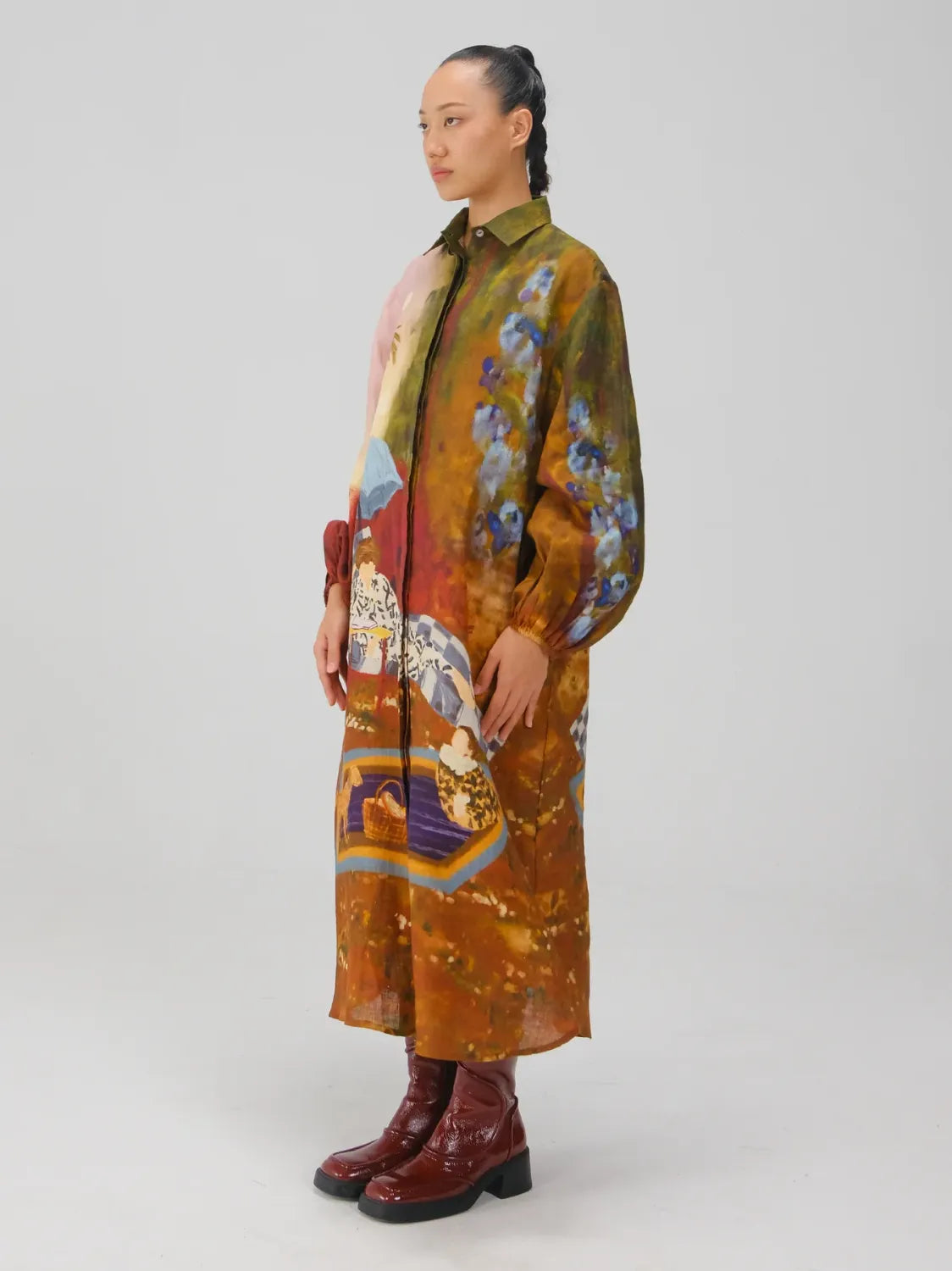 The Ava Dress, crafted from breathable linen in our Lakeside Print, blends comfort with effortless style. With its straight fit, relaxed silhouette, full sleeves, and calf-length cut, it drapes beautifully—perfect for both casual and refined occasions.