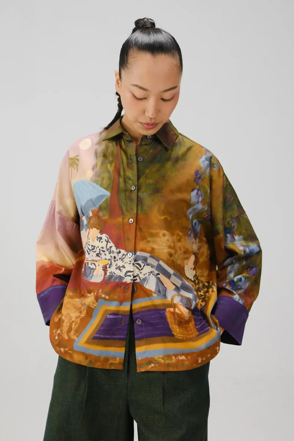 The panel shirt features front button fastening, a classic collar, straight sleeves with cuffs, and a modern panelled twist on a classic shirt.