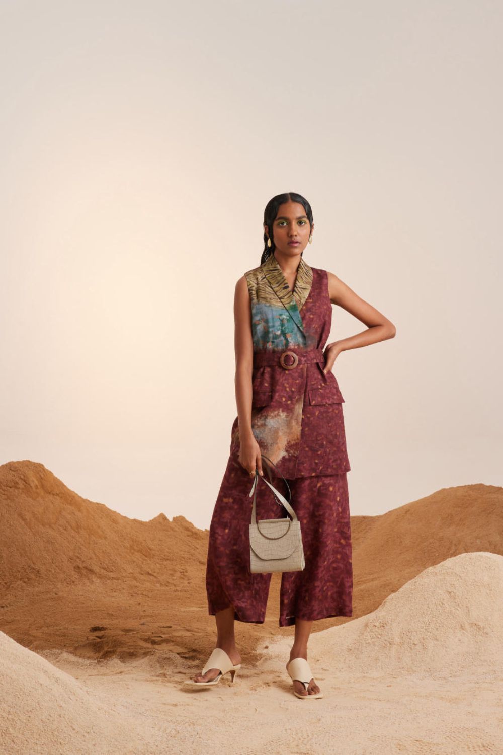 CORD blurs the line between art and attire in a way few labels dare to. Here, fabrics become canvases; illustrations—drawn by hand, steeped in imagination—flow across silhouettes that feel sculptural yet deeply wearable. Each piece has a texture of memory to it, as if it carries echoes of a past life, now reframed for a contemporary world.