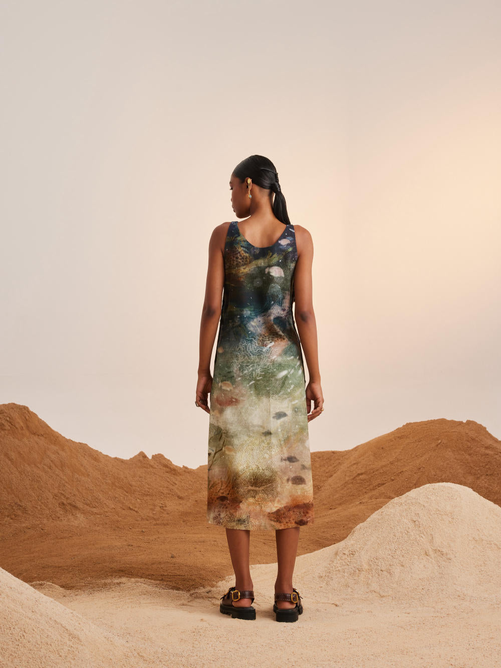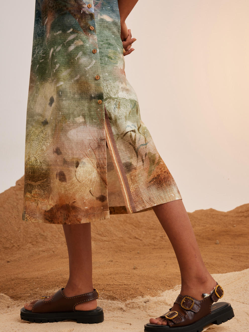 CORD blurs the line between art and attire in a way few labels dare to. Here, fabrics become canvases; illustrations—drawn by hand, steeped in imagination—flow across silhouettes that feel sculptural yet deeply wearable. Each piece has a texture of memory to it, as if it carries echoes of a past life, now reframed for a contemporary world.