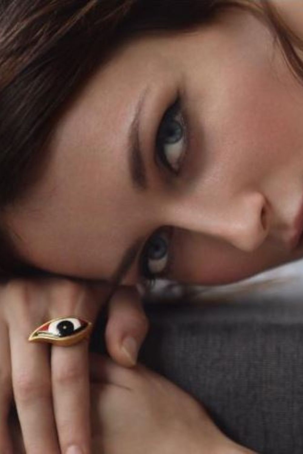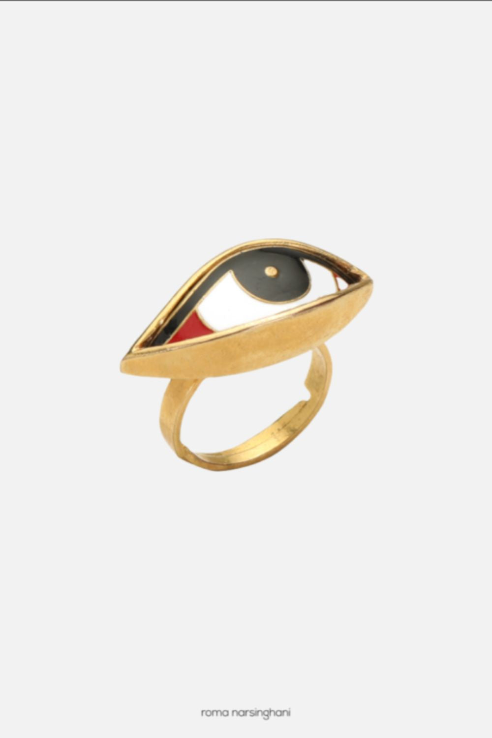 Product Category: Ring Third eye ring is a delicately hand crafted ring with love and intimacy of gold and fine craftsmanship. Third eye ring is a delicately hand crafted ring with love and intimacy of gold and fine craftsmanship. Size: Free size The piece is set in brass, hand enameled with 18KT gold finesse. Each piece is unique and handcrafted by our artisans.