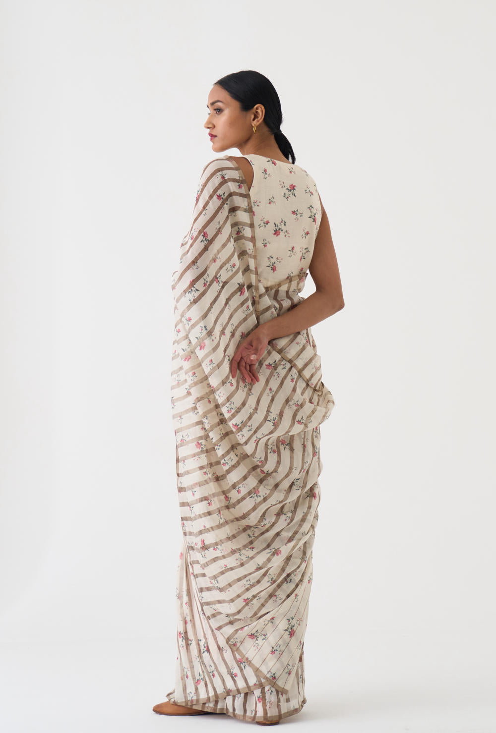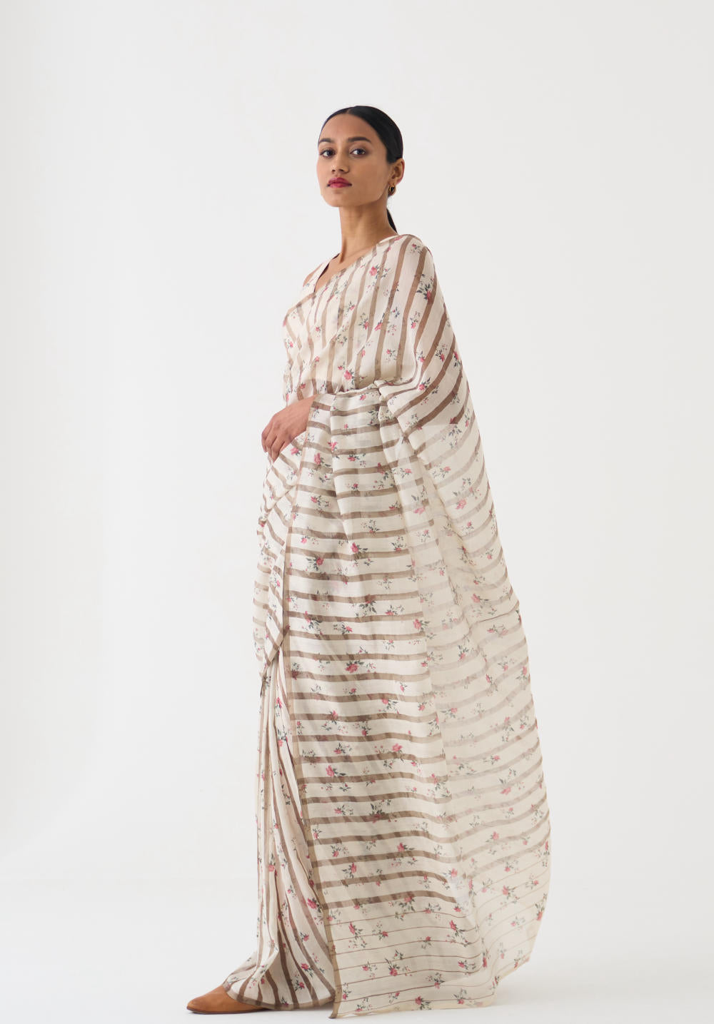 Exquisite Chintz Printed Zari Stripped Chanderi Saree with a Cotton Silk blouse, perfect for the festive season. The Chintz Print adds a touch of elegance and charm to the traditional design, while the Chanderi Fabric ensures a comfortable and luxurious feel.