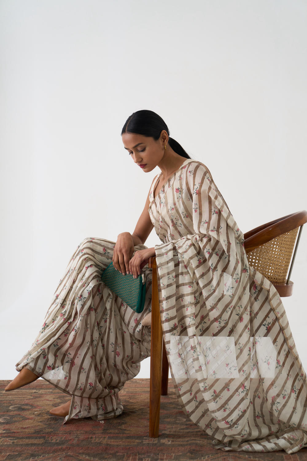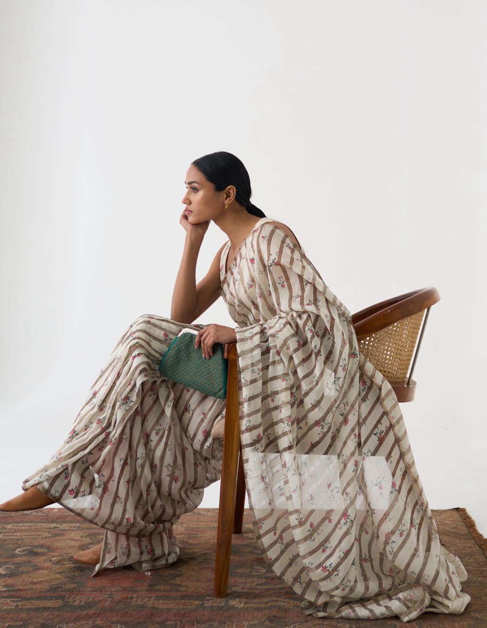 DOT is built on the philosophy of simple living: colours borrowed from nature, silhouettes that float rather than cling, and craftsmanship that honours tradition without performing it. There is a serenity to their pieces — soft pastels, fluid drapes, minimal embroidery, and a lingering hint of the vintage. Everything feels poetic, but never precious; modern, but never loud. Their garments live in that delicate balance where texture, alignment, and movement tell the story.