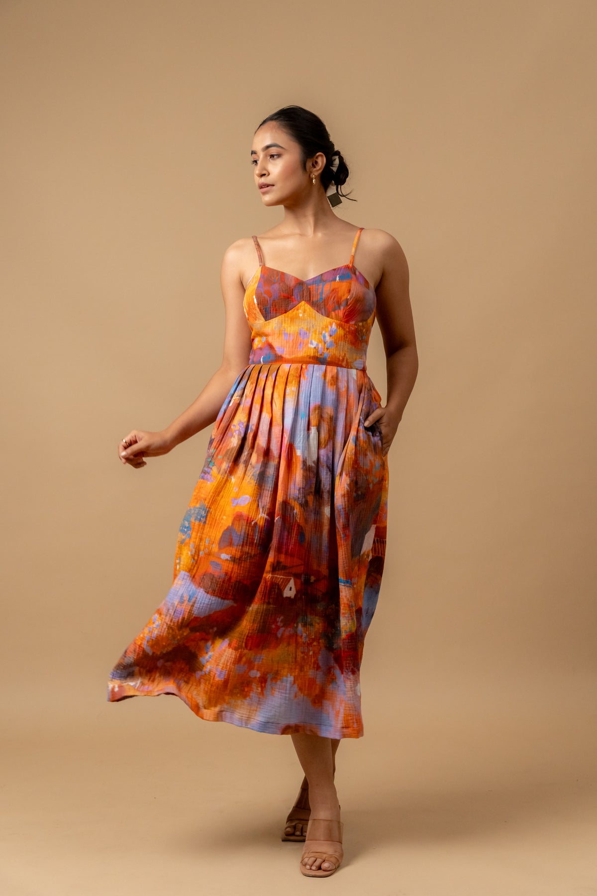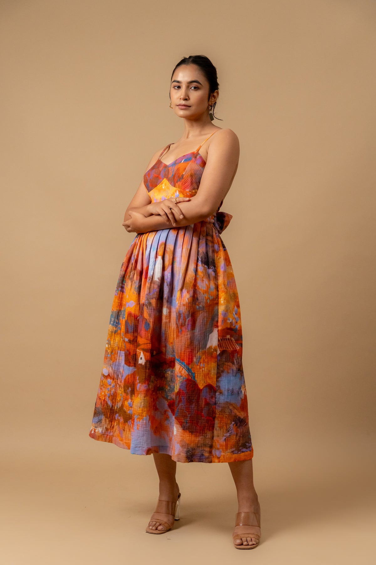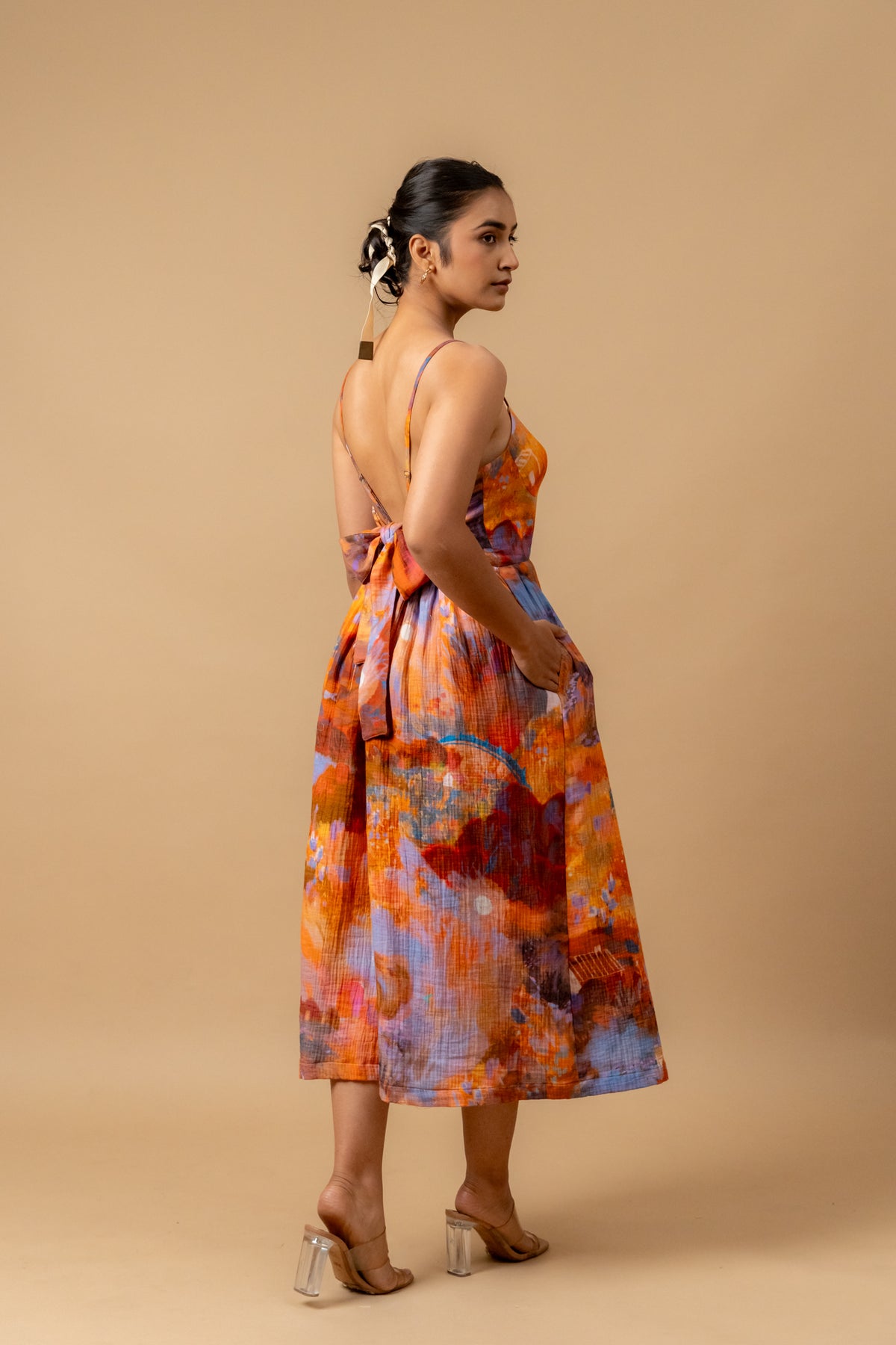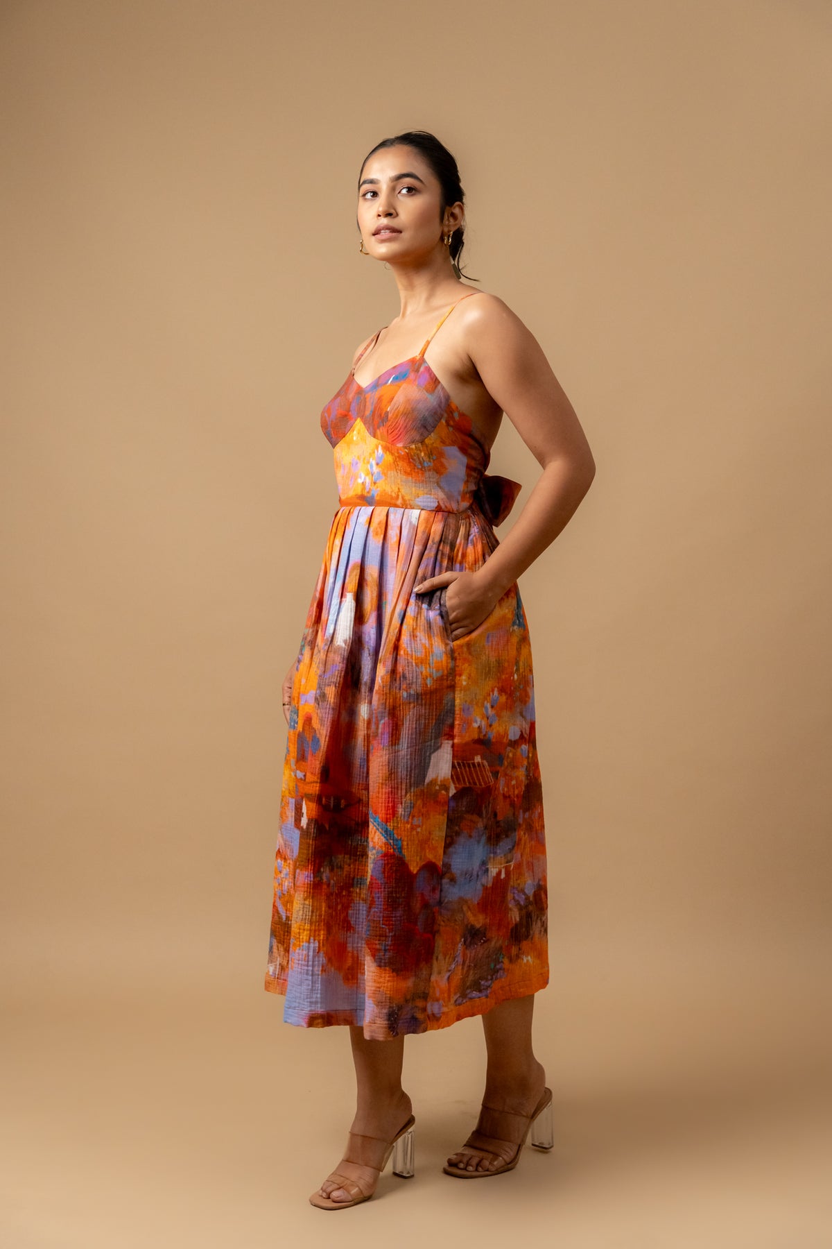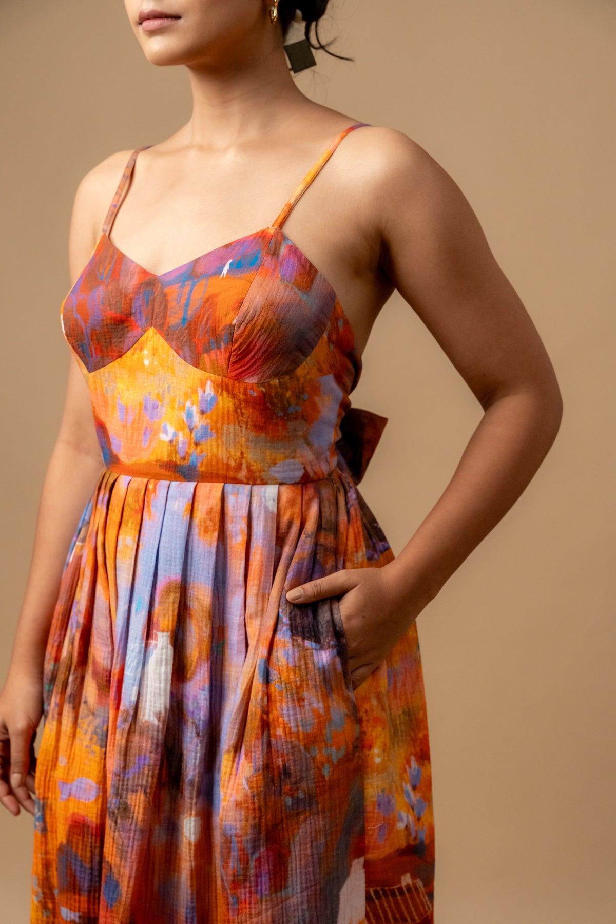 Description: A playful sundress with pleated waist, a charming back bow, and inseam pockets. Perfect for sunny days, wear it solo or layer under a denim jacket for a casual look.