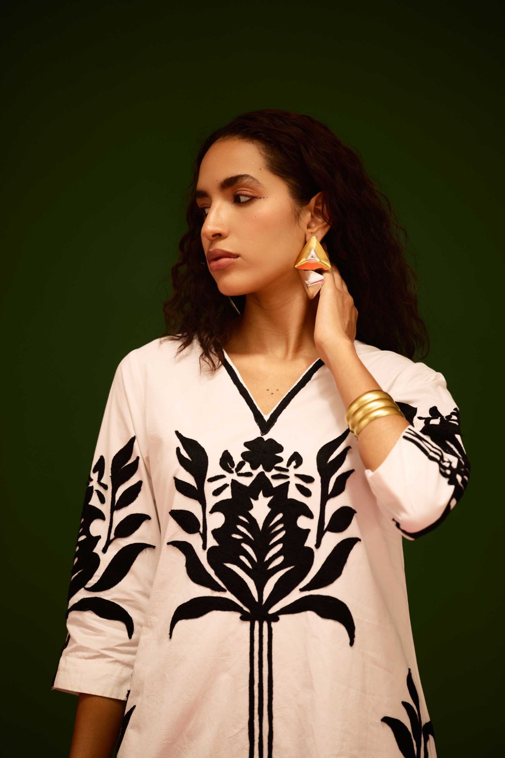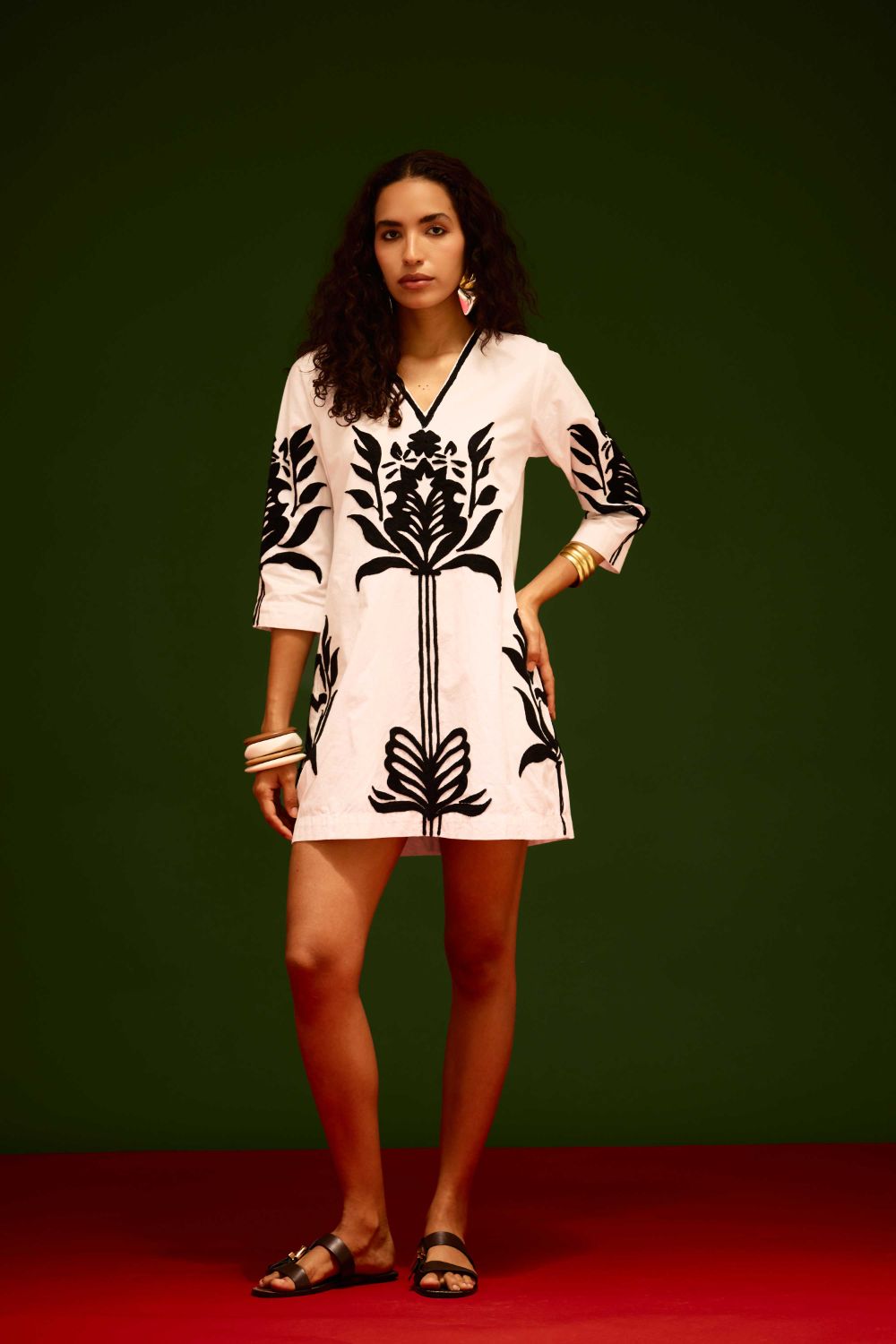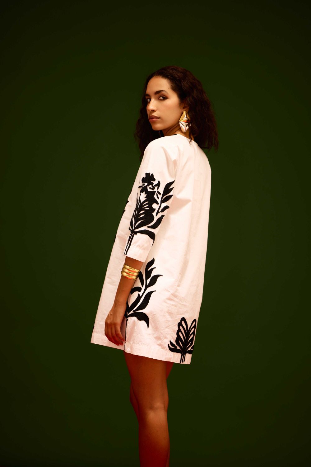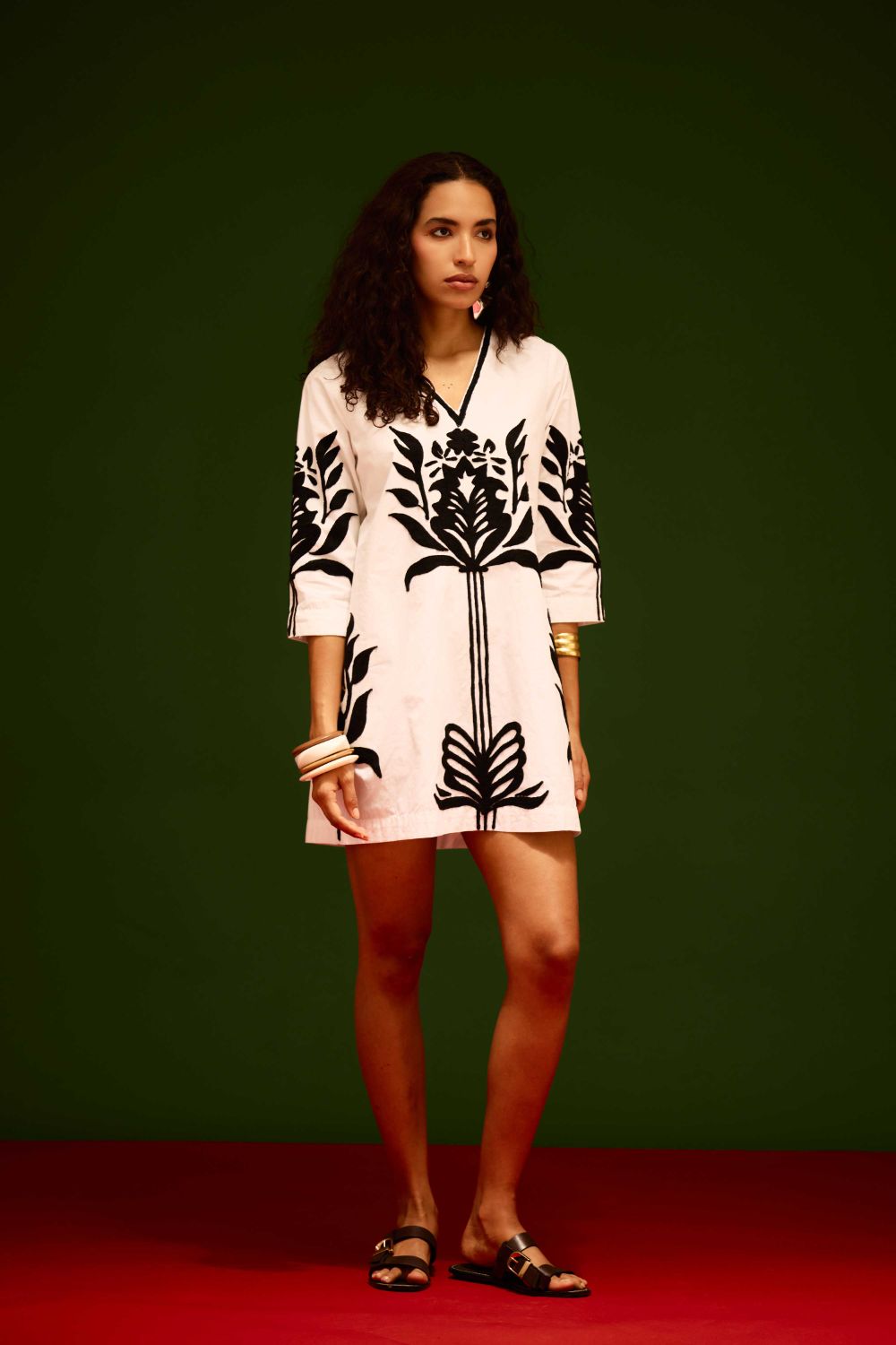 Ivory Cotton Shift Dress with Black Tulip Thread Embroidery
