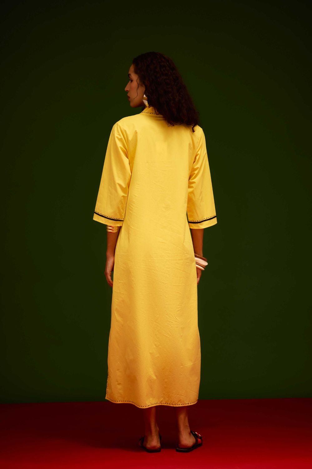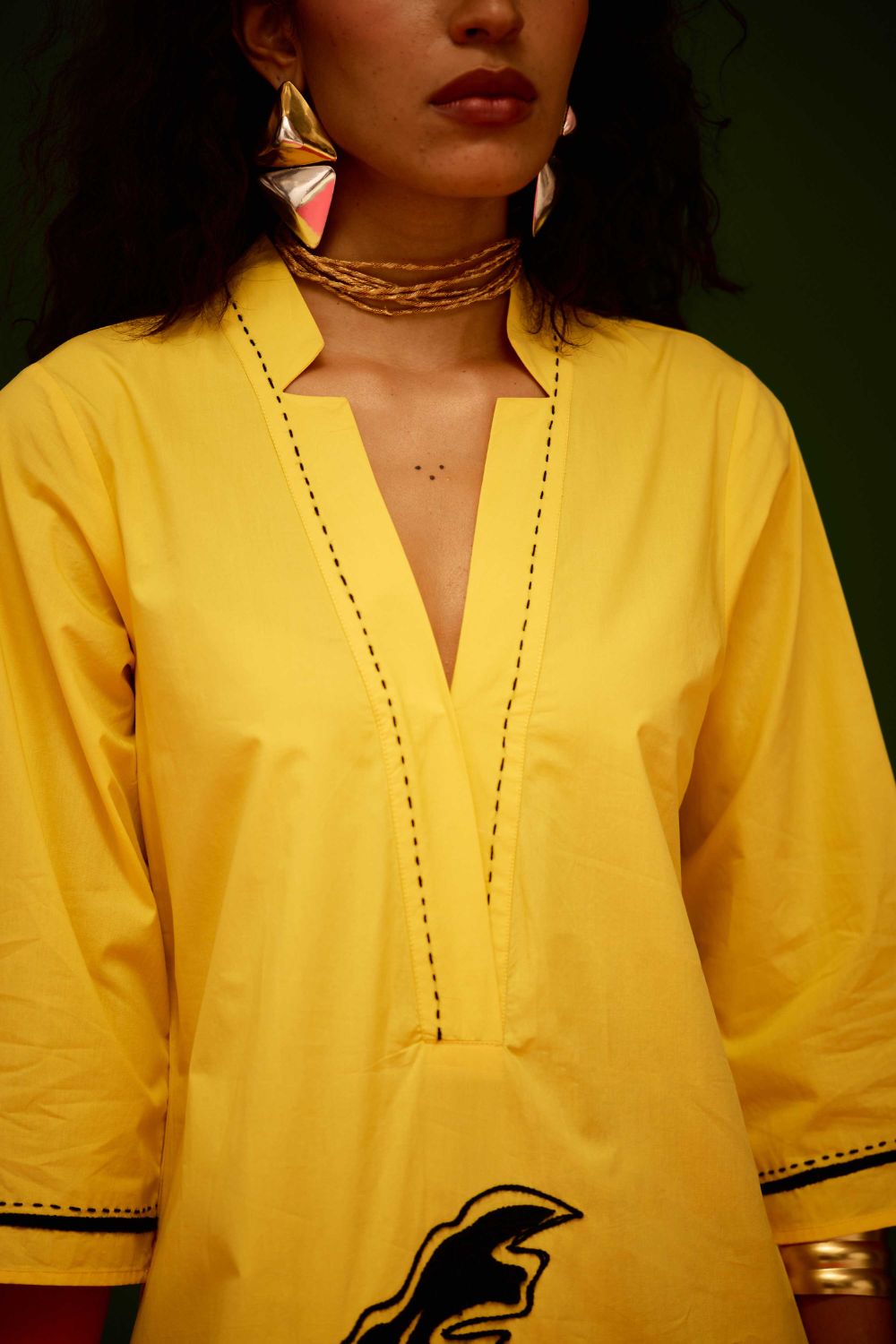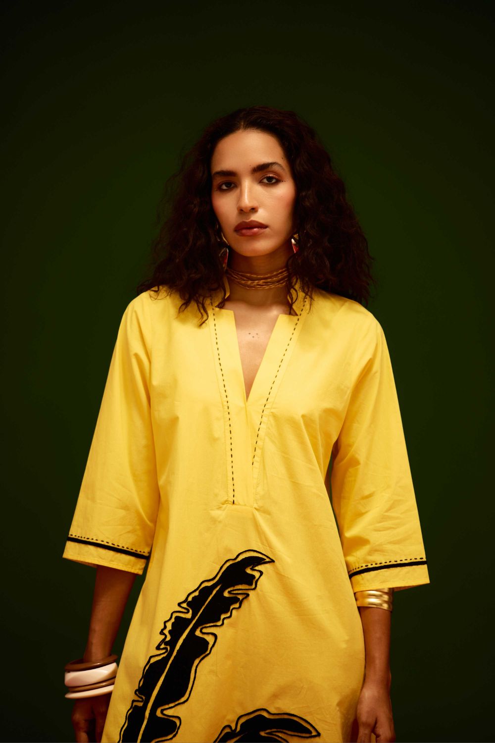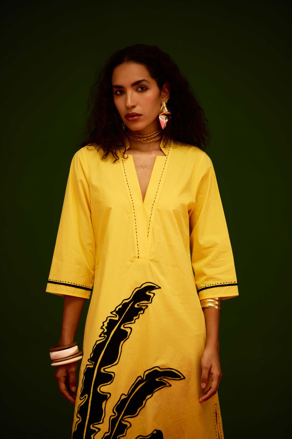 Mango Yellow Cotton Thread Embroidered Dress with Leaf Motif