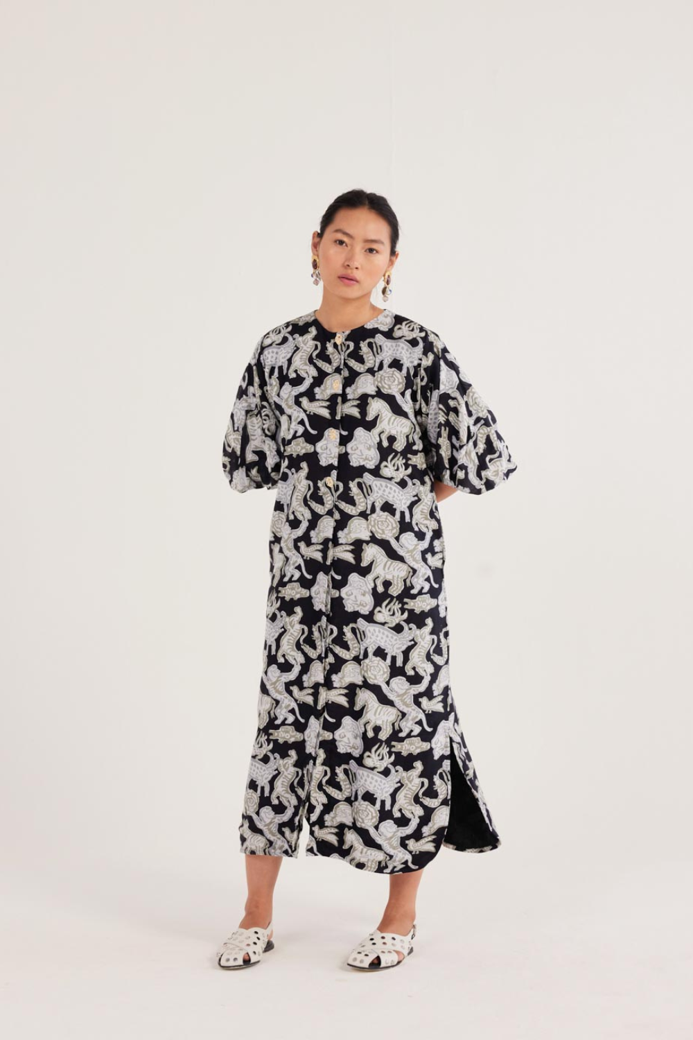 One dress, two ways to wear it. Button it up for a sleek look or leave it open over shorts or trousers for an easy, laid-back vibe. With golden metal buttons for show and side slits for extra comfort, it’s one versatile piece.