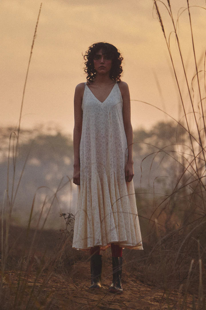 A flowing slip dress crafted in delicate cotton lace. Perfect for layering or wearing on its own.