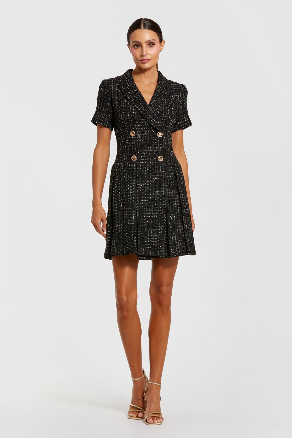 Black Short Sleeve V Neck Tweed Blazer Mini Dress