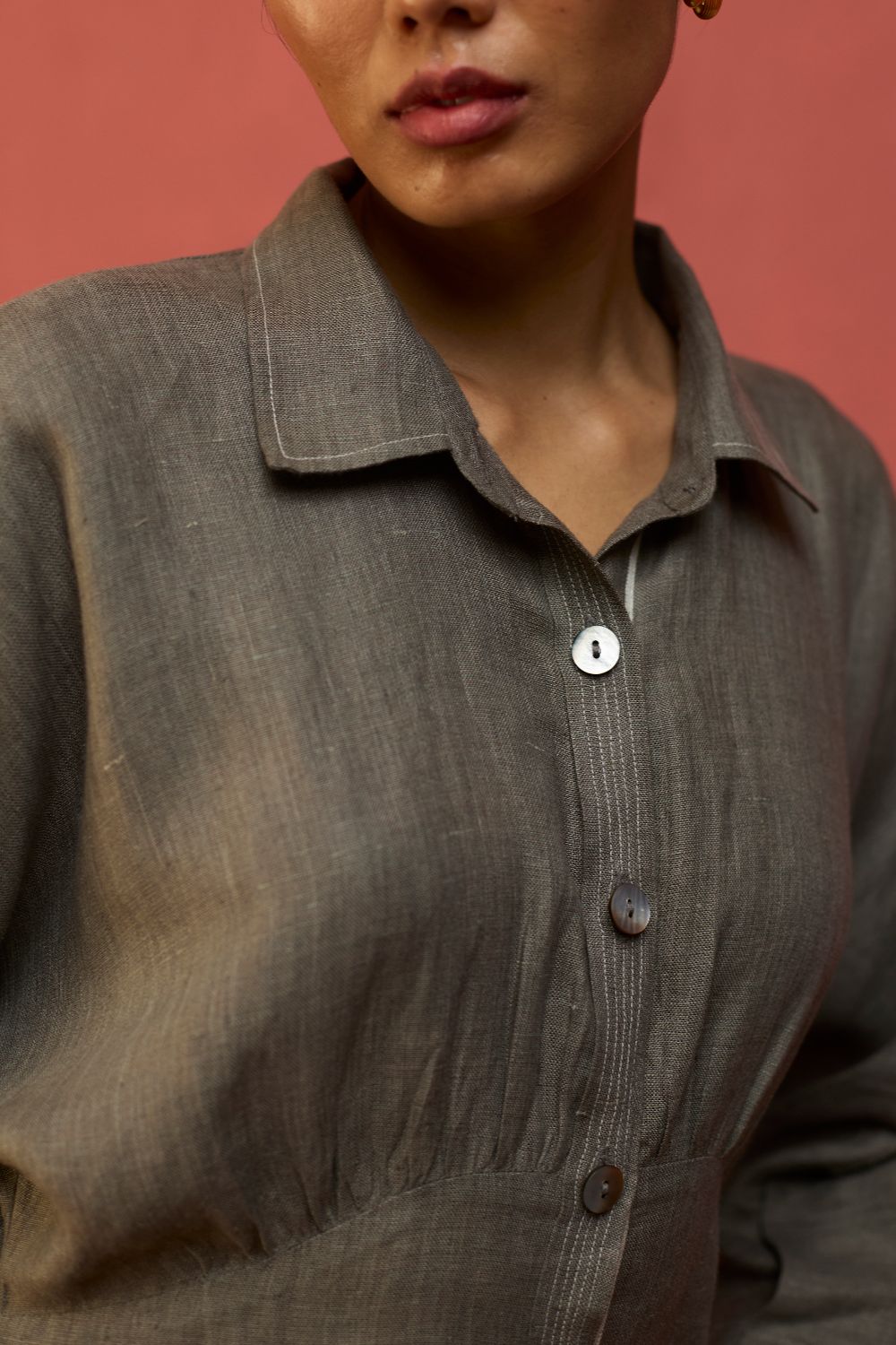 Masaru Buttoned Linen Dress - Grey