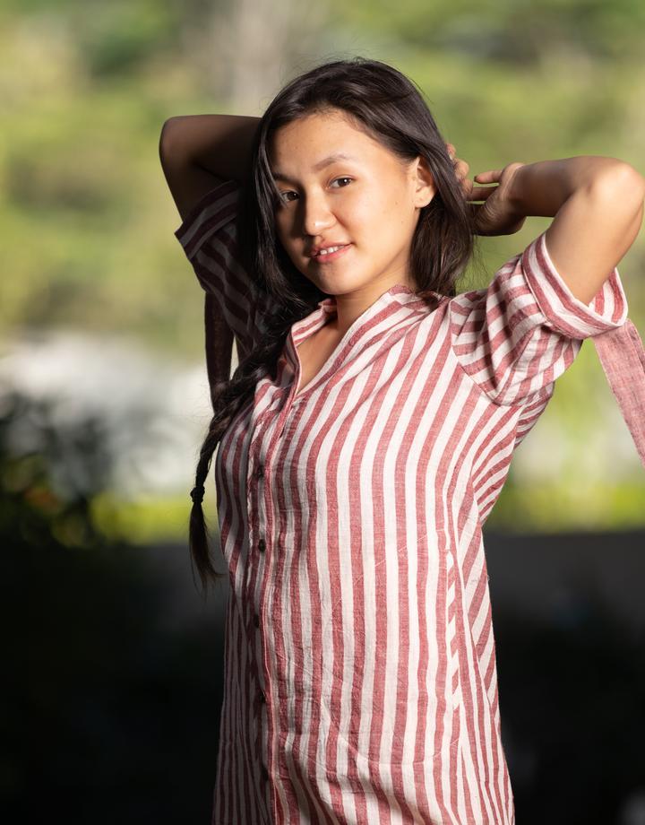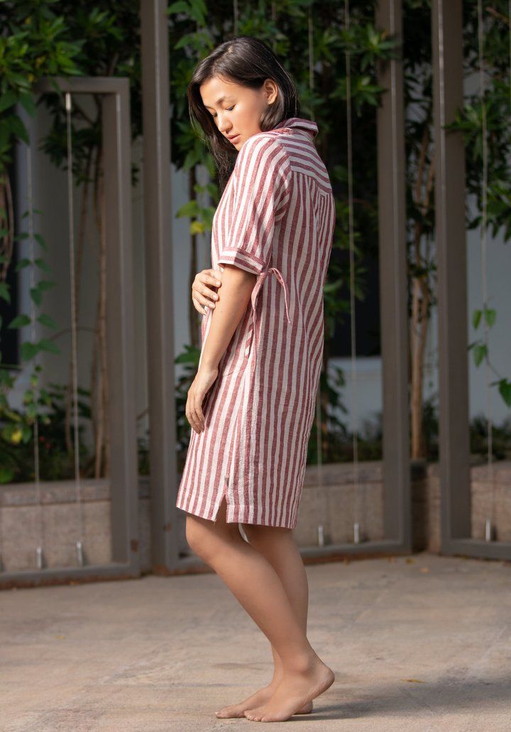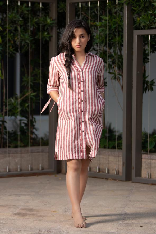 A good shirt dress makes for a great investment piece. It adapts so well in many settings. For the colder months, it lends itself as a great laying base underneath an overcoat or a shrug. For summers it looks just stunning as it is. Our Como shirt dress comes with buttoned-up detailing, slits for ease of movement, side pockets, elbow length sleeves with playful knots that give off an elevated vibe. Style it with boots, neutral bag and a delicate gold bracelet to seize the day. Details: Fit : Regular Dye : Natural Composition : Organic Cotton (Handwoven) Handcrafted in India